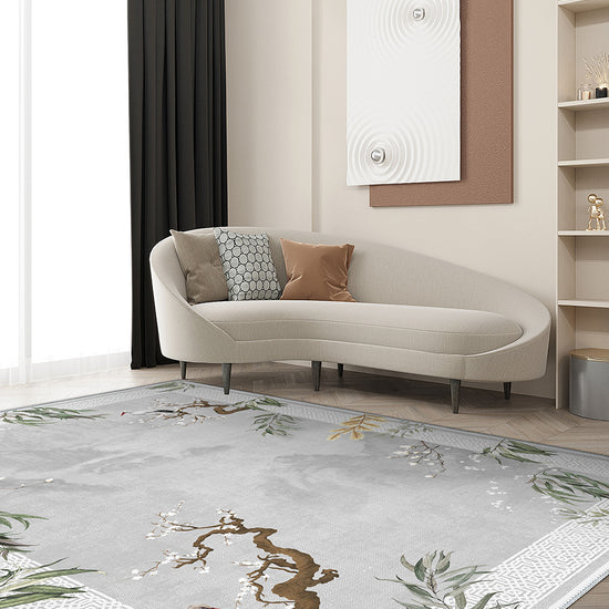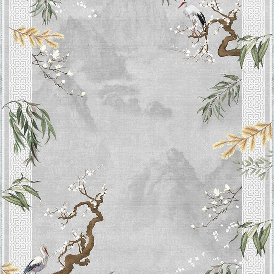 The Haku Grey Crane Rug brings a sense of calm and refinement to any space, blending traditional East Asian artistry with a contemporary touch. Featuring a misty grey background with delicate cranes perched on blossoming branches, this design embodies grace and tranquillity. The finely detailed geometric border enhances its elegance, making it a sophisticated statement piece.