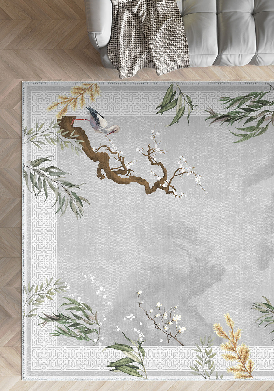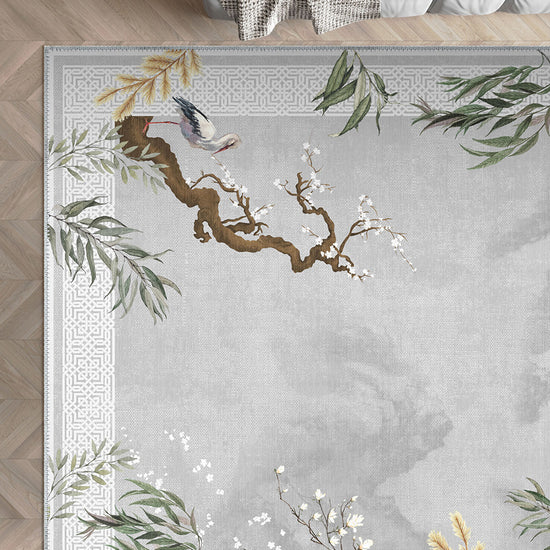 Haku Grey Crane Rug – Timeless Elegance Inspired by Nature