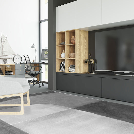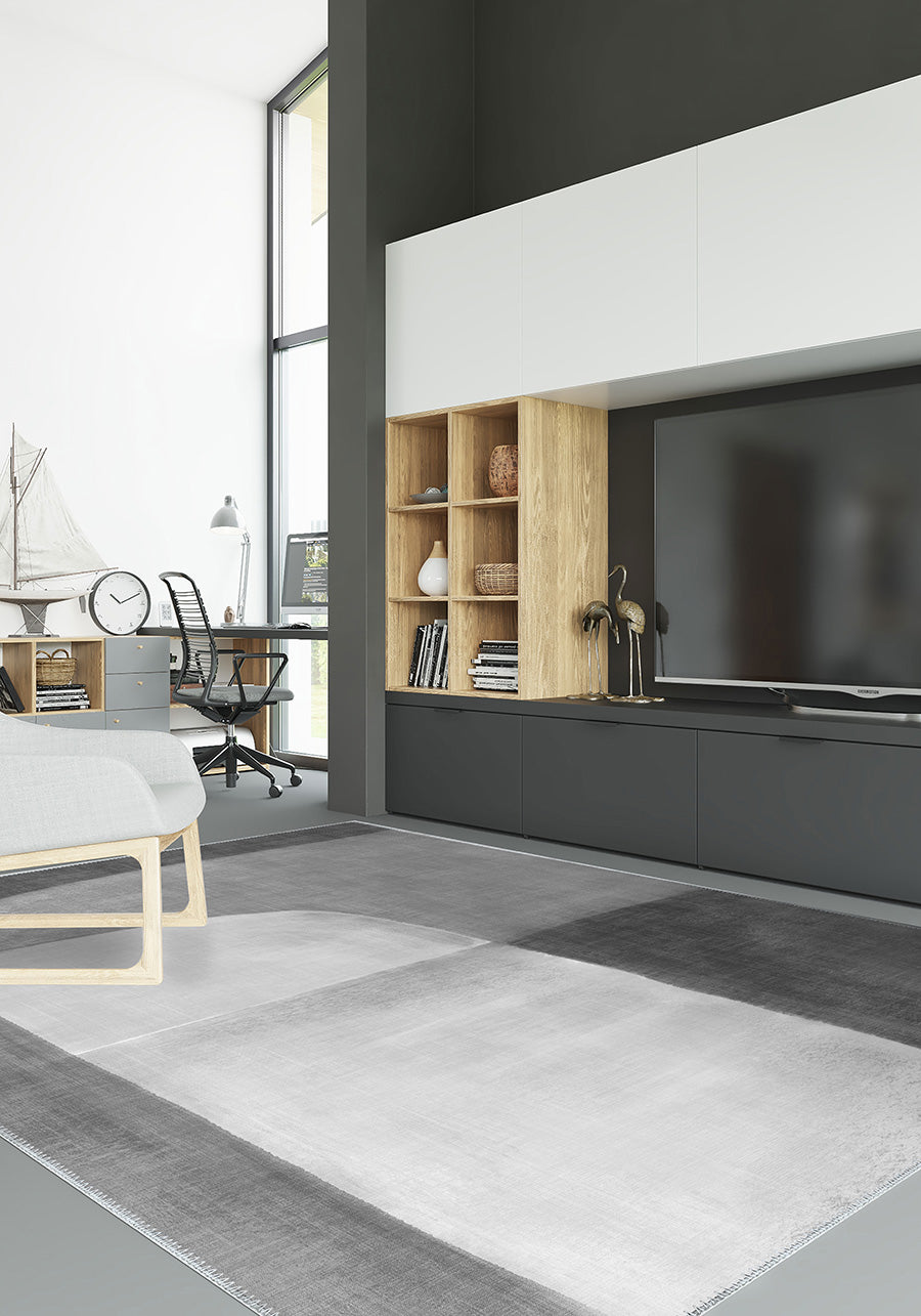 Rugette rugs feature a dust-free design and low pile, providing a sleek, easy-to-clean surface for a modern home.