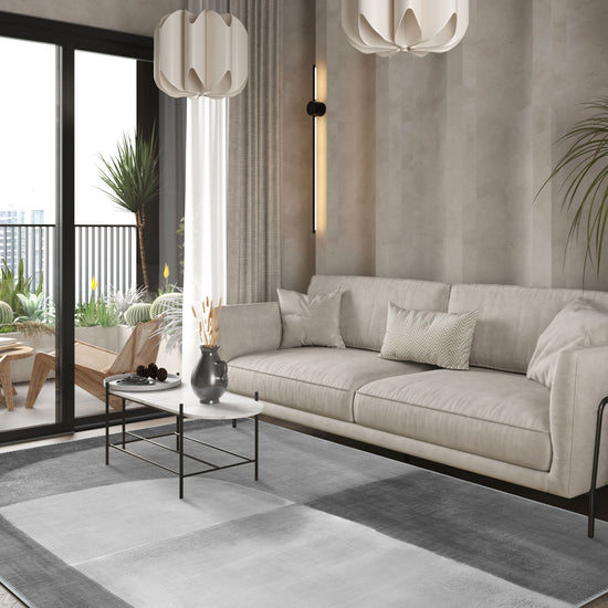 The Ianthe Grey Abstract Rug features a sophisticated abstract design in a harmonious blend of grey shades. Its minimalist composition adds a modern and artistic touch to your home, making it an ideal centerpiece for contemporary interiors. Crafted with versatility and elegance in mind, this rug is perfect for creating a calm and balanced atmosphere.