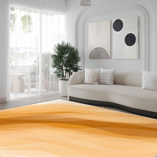 Infuse your home with warmth and movement with the Jaxon Modern Orange Rug. Its fluid, wave-like pattern in **rich amber, burnt orange, and soft caramel hues** brings a dynamic energy to any space. The seamless blend of warm tones creates an inviting atmosphere, making it a bold yet sophisticated addition to modern interiors.