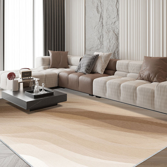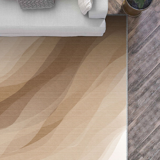 Embrace the fluid beauty of modern design with the Jaxon Modern Washable Rug. Featuring an abstract wave pattern in a harmonious blend of warm beige, soft taupe, and rich brown tones, this rug adds depth and movement to any space. The sleek, minimalist aesthetic makes it a perfect choice for contemporary and neutral interiors, offering both visual intrigue and effortless sophistication.