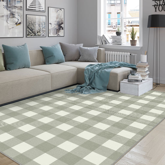 Jove Checkered Sage Green Rug – Timeless Style with a Modern Touch