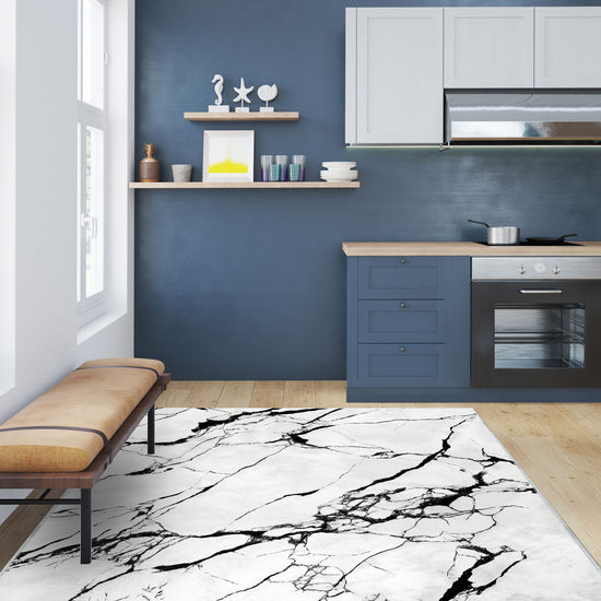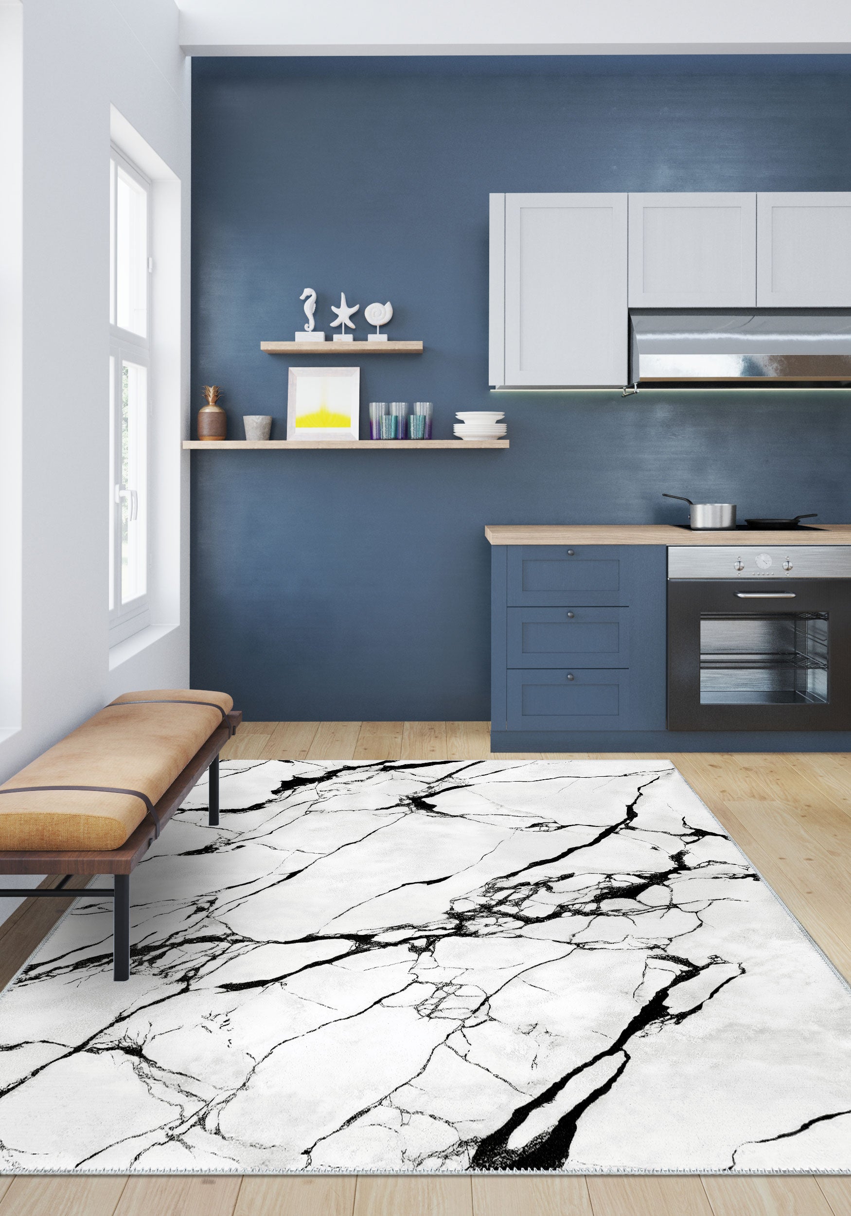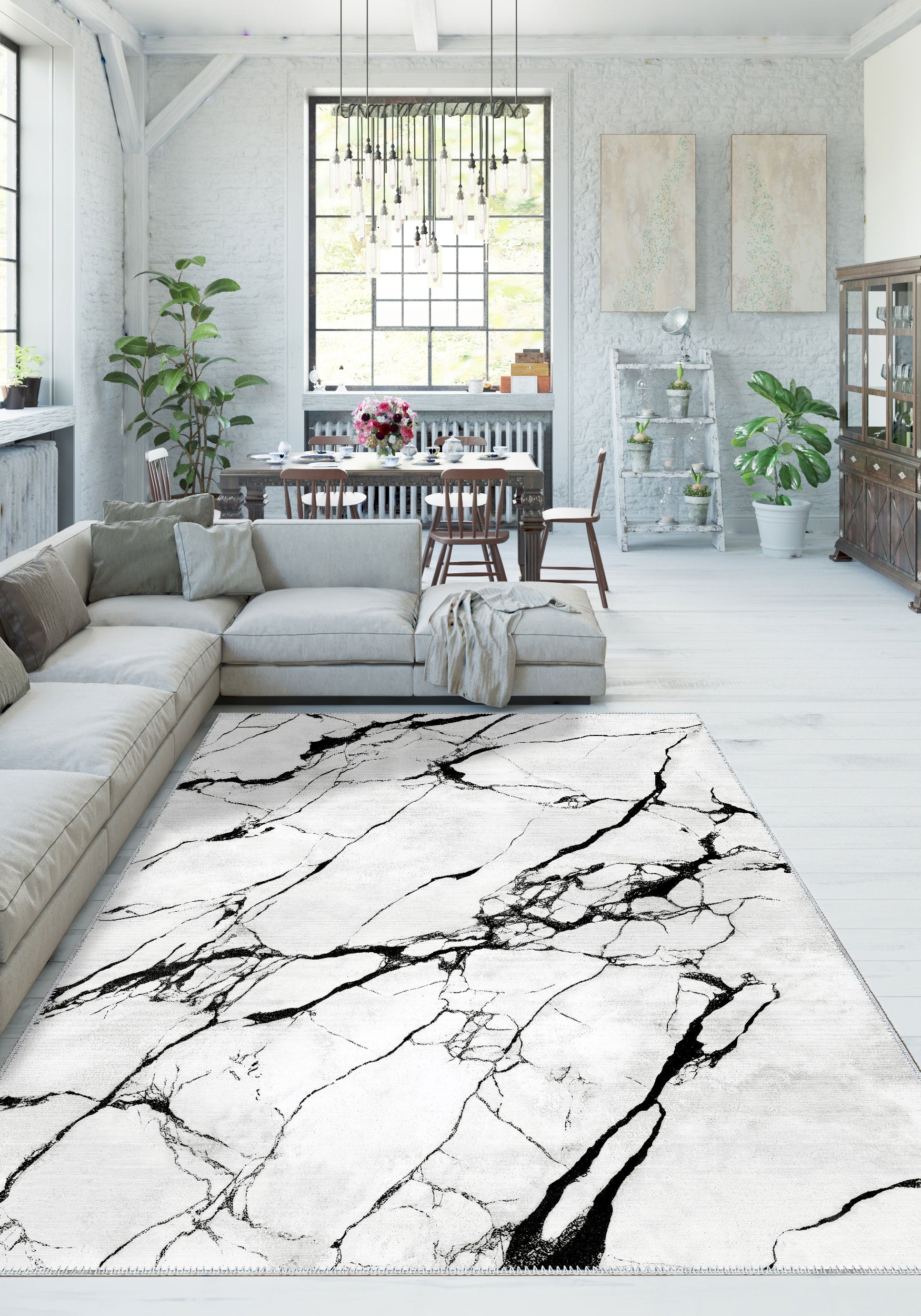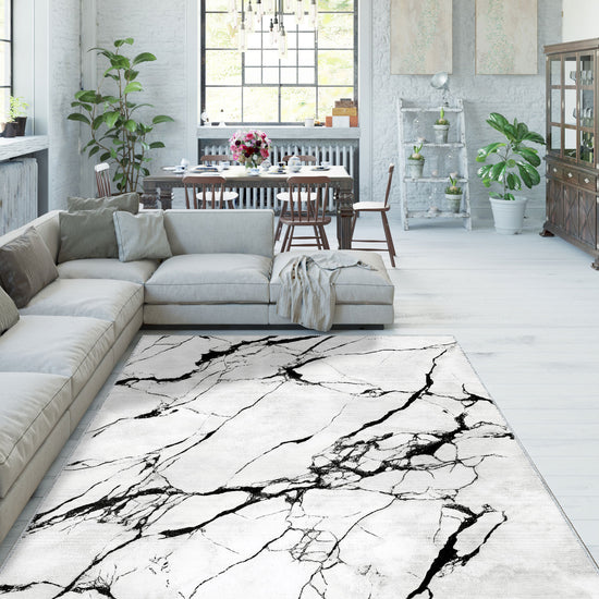 - Modern & Contemporary: The sleek marble pattern and monochrome palette make this rug a perfect match for modern and contemporary interiors.