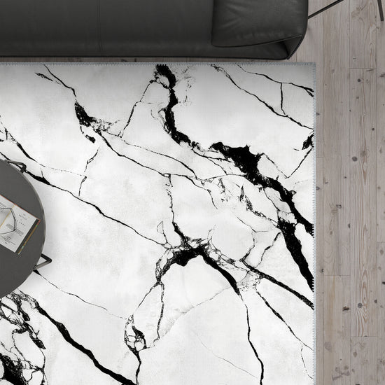 The Julia Marble Washable Rug offers a striking and contemporary marble design, seamlessly combining sophistication with practicality. Its monochrome palette of white and black marbling adds a touch of luxury to your space, while its washable feature ensures ease of maintenance, making it perfect for busy households or high-traffic areas.