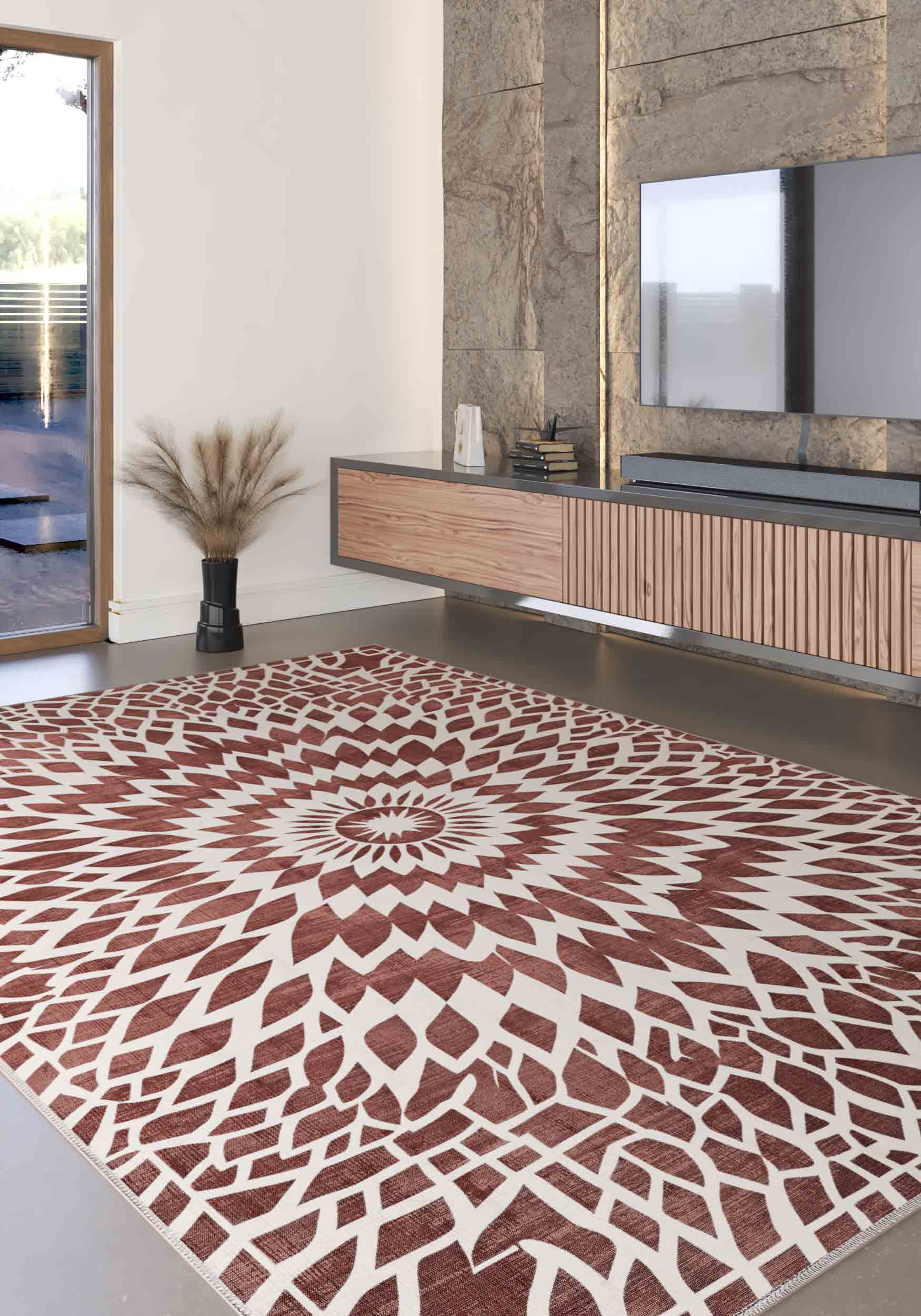 Juno Washable Burgundy Rug – Bold Design Meets Everyday Practicality