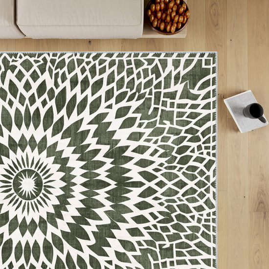 Juno Washable Green Rug – Vibrant Starburst Design with Everyday Ease