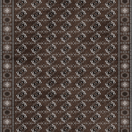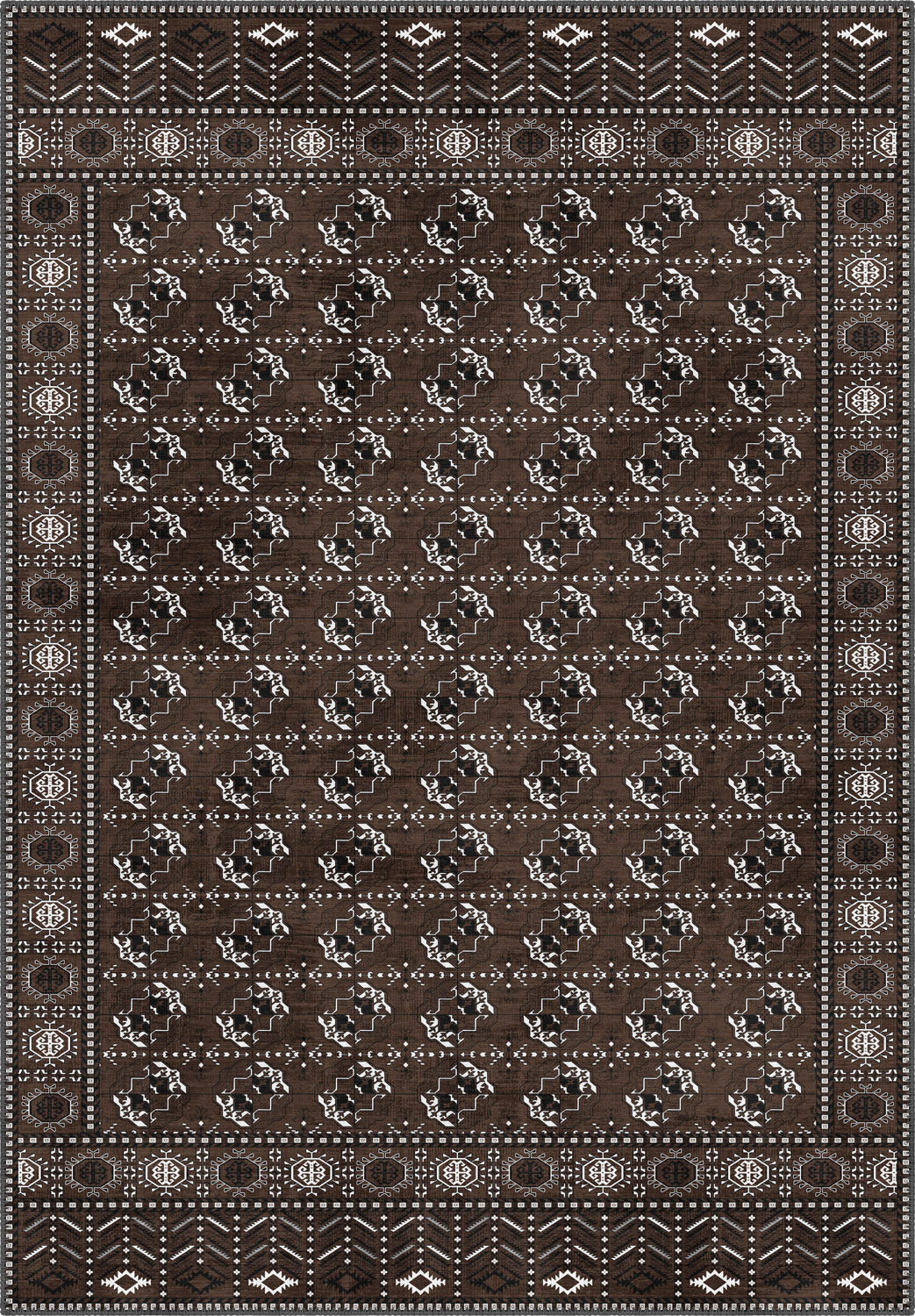 The Kael Brown Washable Rug brings a sense of quiet strength and grounded style to your space. Inspired by the timeless elegance of a classic Bokhara rug, its design features intricate geometric medallions and finely detailed borders in a rich, earthy brown palette—an effortless blend of history and function.