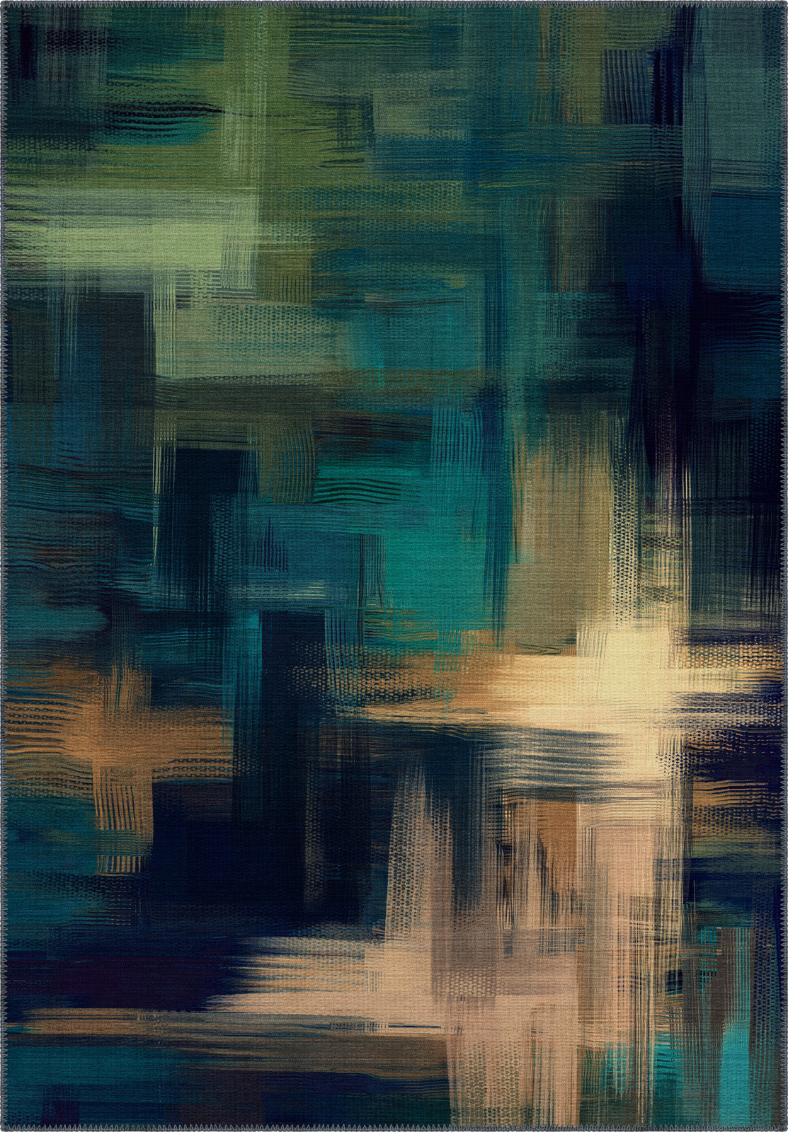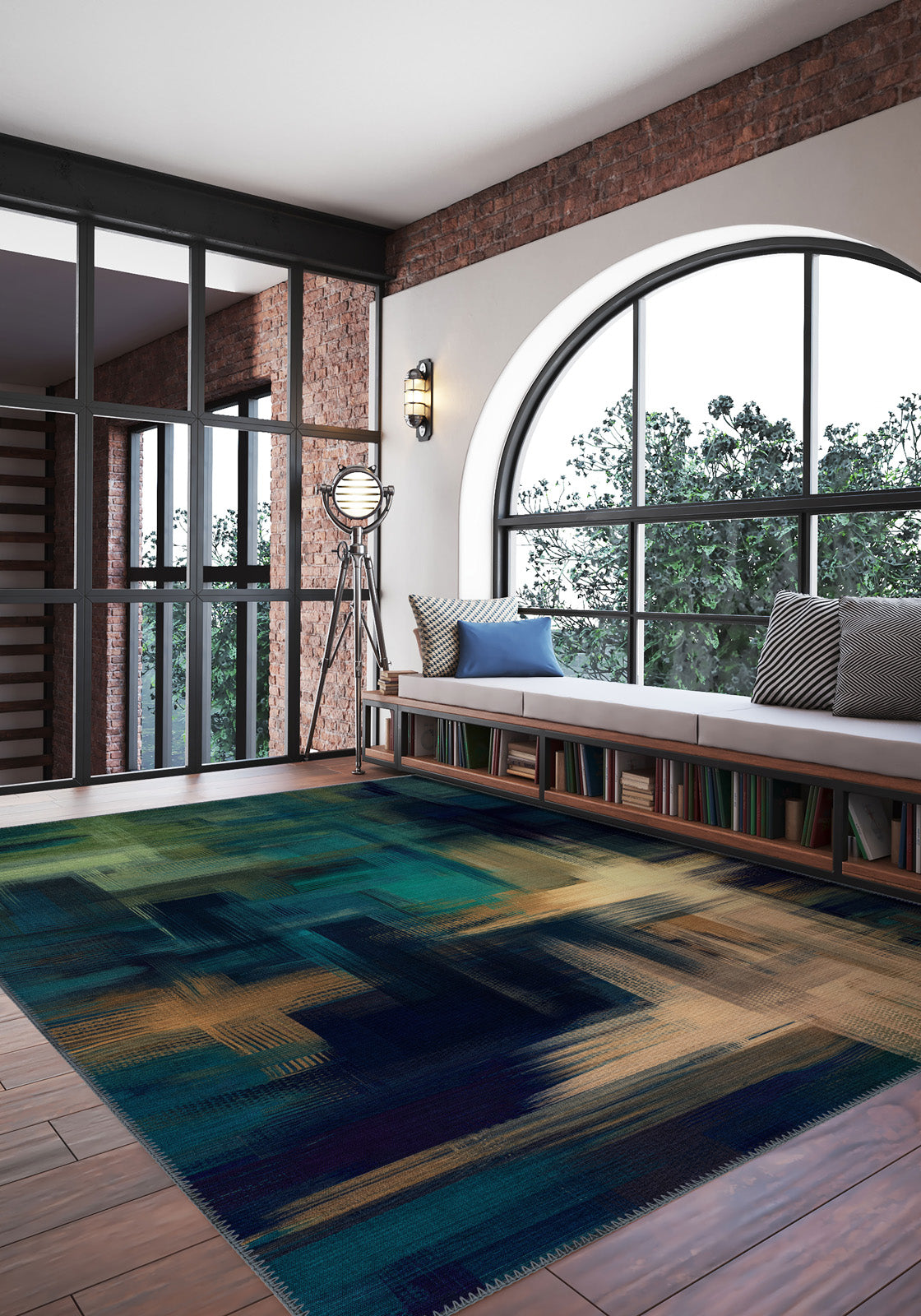 Enliven your home with the Kasen Abstract Colourful Washable Rug. This vibrant and contemporary rug showcases a blend of deep greens, blues, and earthy tones, creating an abstract masterpiece for your floor. Ideal for adding an artistic vibe to modern interiors.