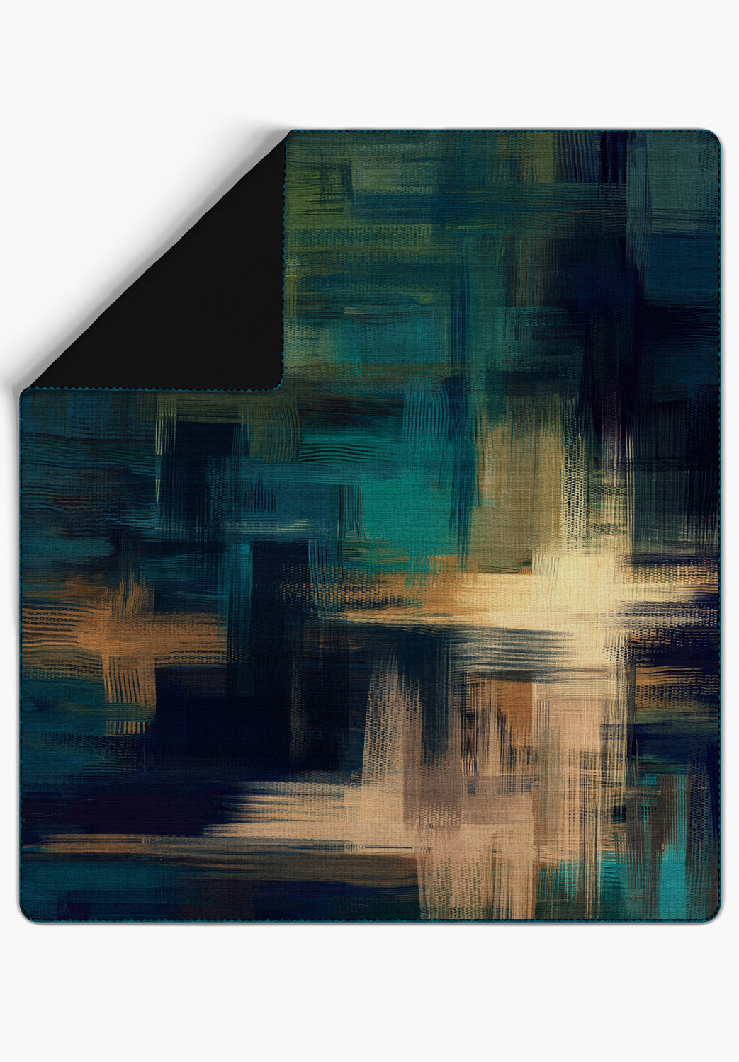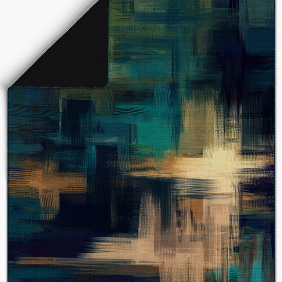 The Kasen Teal Blanket and Bedspread feels like a contemporary artwork translated into fabric. Layered brushstroke textures move through deep teal, inky blues, and softened gold highlights, creating a design that feels expressive yet composed. It brings drama to a space without tipping into excess, rich, moody, and beautifully balanced.