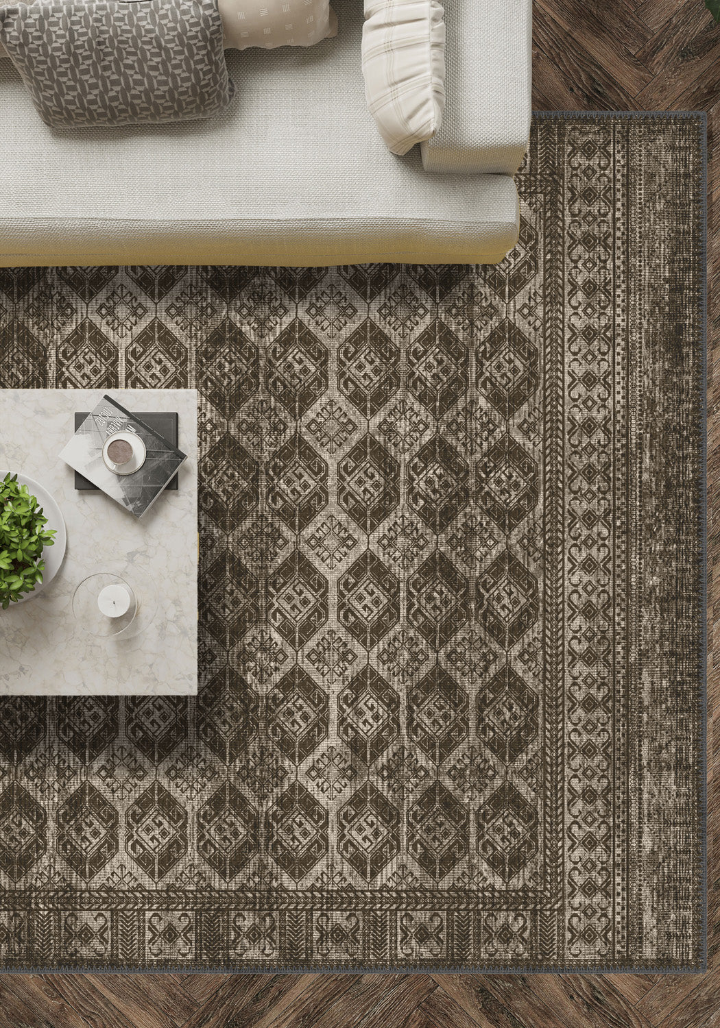 The Larona Brown Rustic Rug adds an inviting, vintage-inspired touch to your home. Whether paired with rustic decor or used to ground a contemporary space, its rich texture and classic pattern bring warmth and sophistication to any setting.