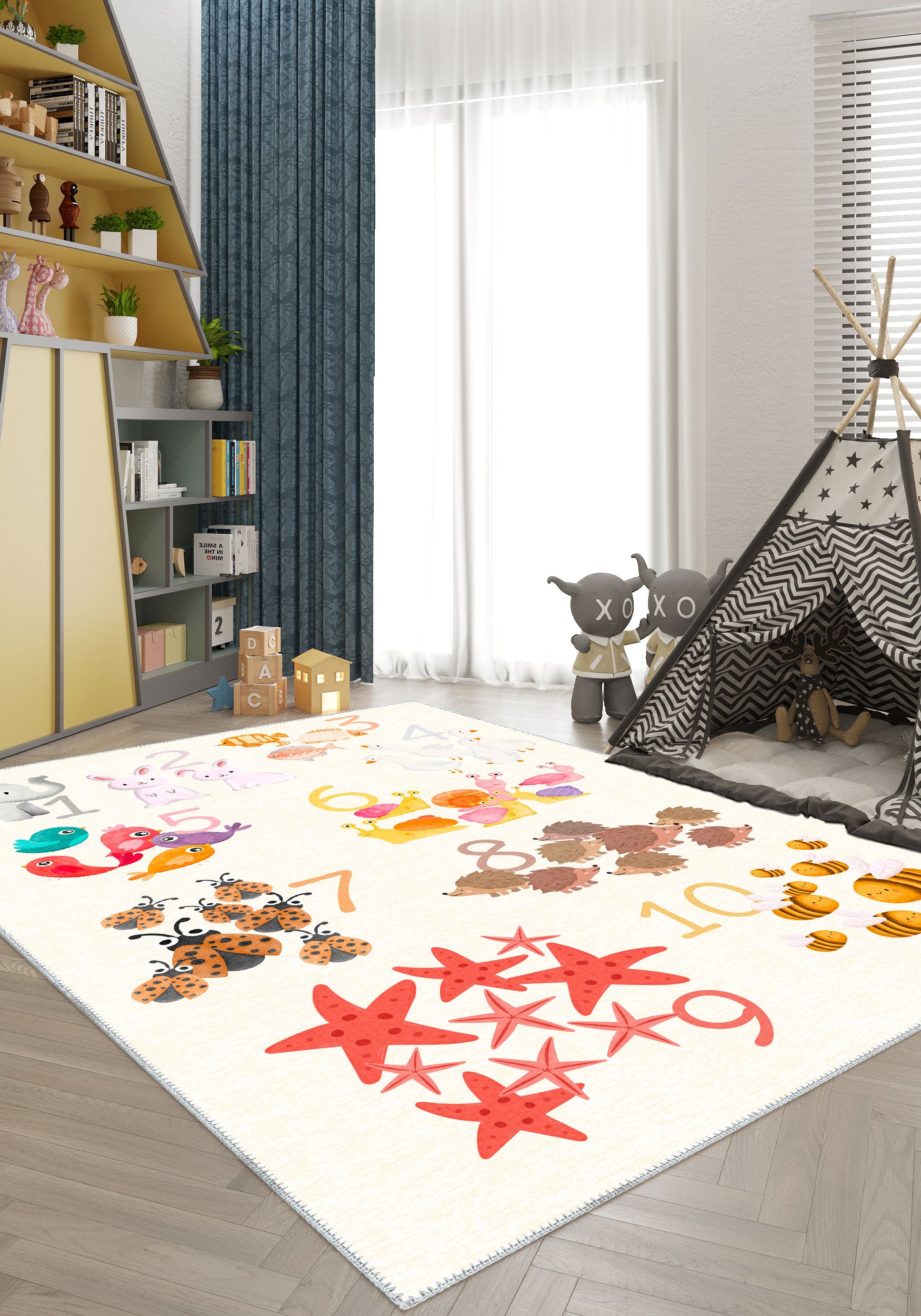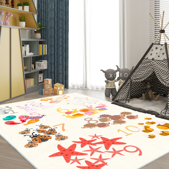 The Learn to Count Kids Room Rug is the perfect addition to any nursery, playroom, or classroom. With vibrant animal illustrations, this rug not only brightens up any space but also helps children learn their numbers in a fun and interactive way. Each number is paired with a cute group of animals, from elephants to bunnies, making counting an exciting visual experience for kids.