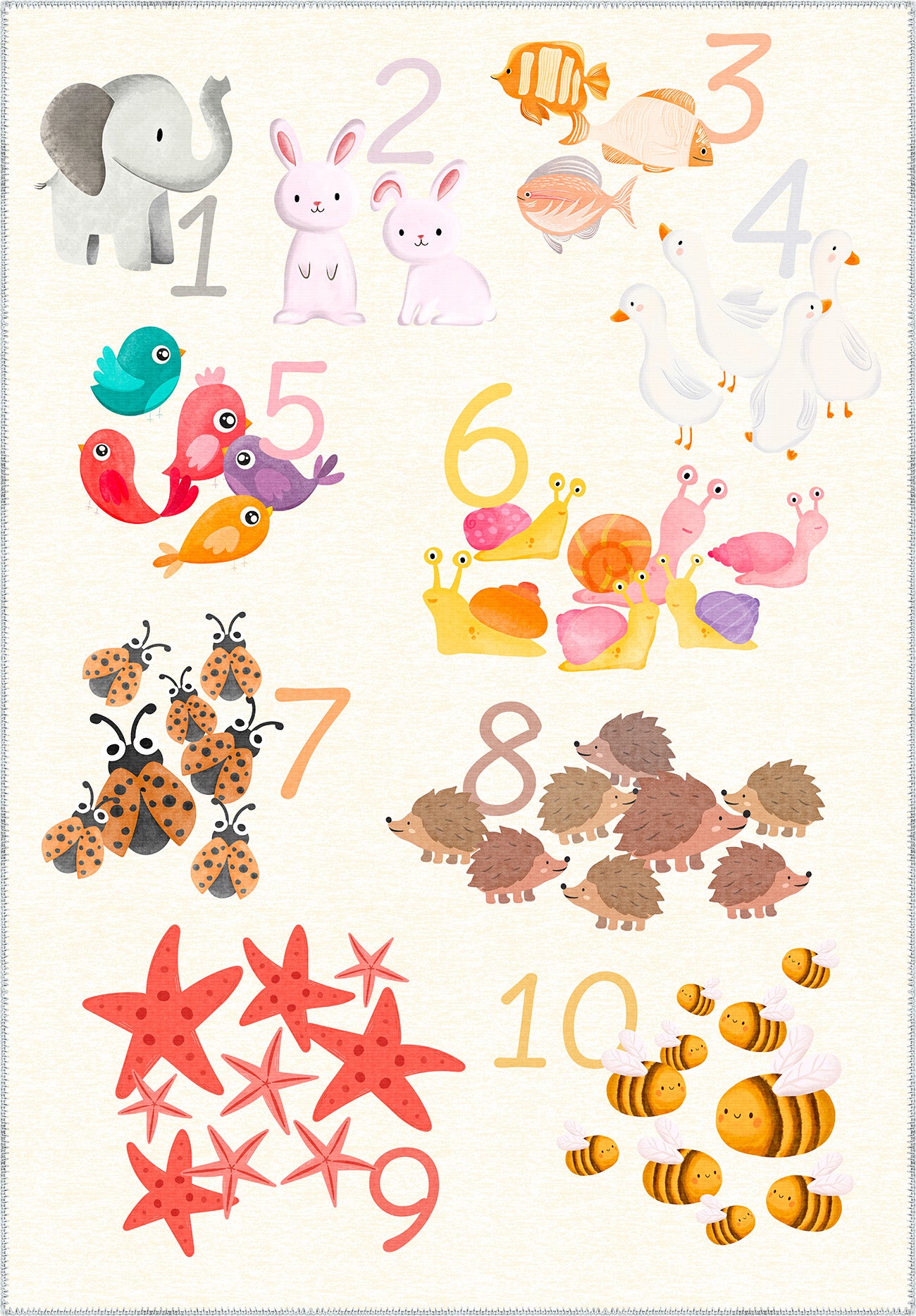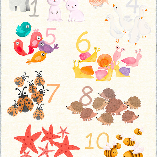 - Educational Design: Numbers 1 to 10 are illustrated with adorable animals such as elephants, fish, bunnies, and bees, helping children learn to count while they play.