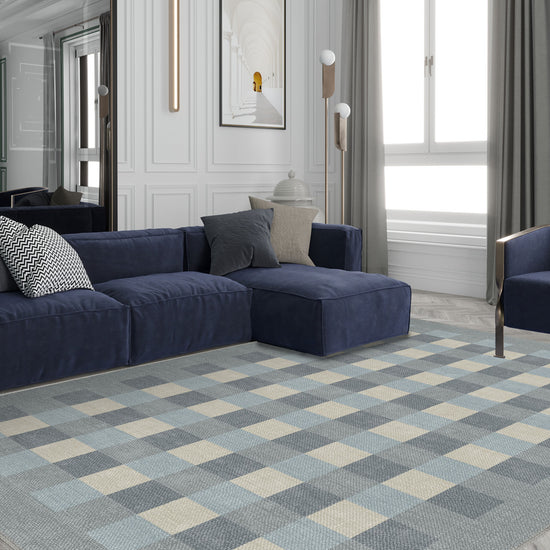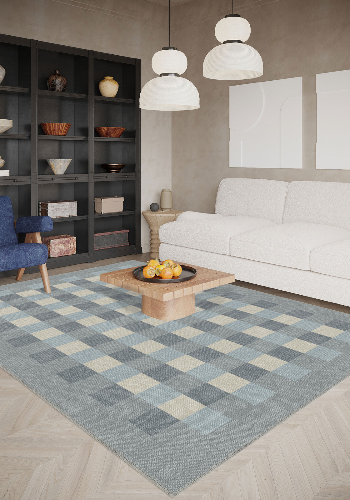 - Soft blue and ivory checkered design for a refreshing aesthetic