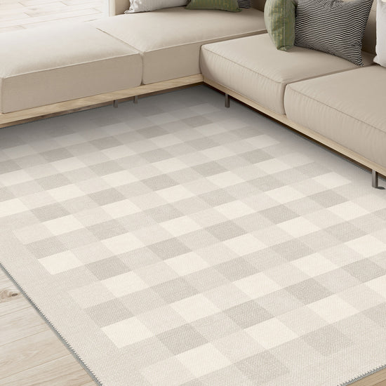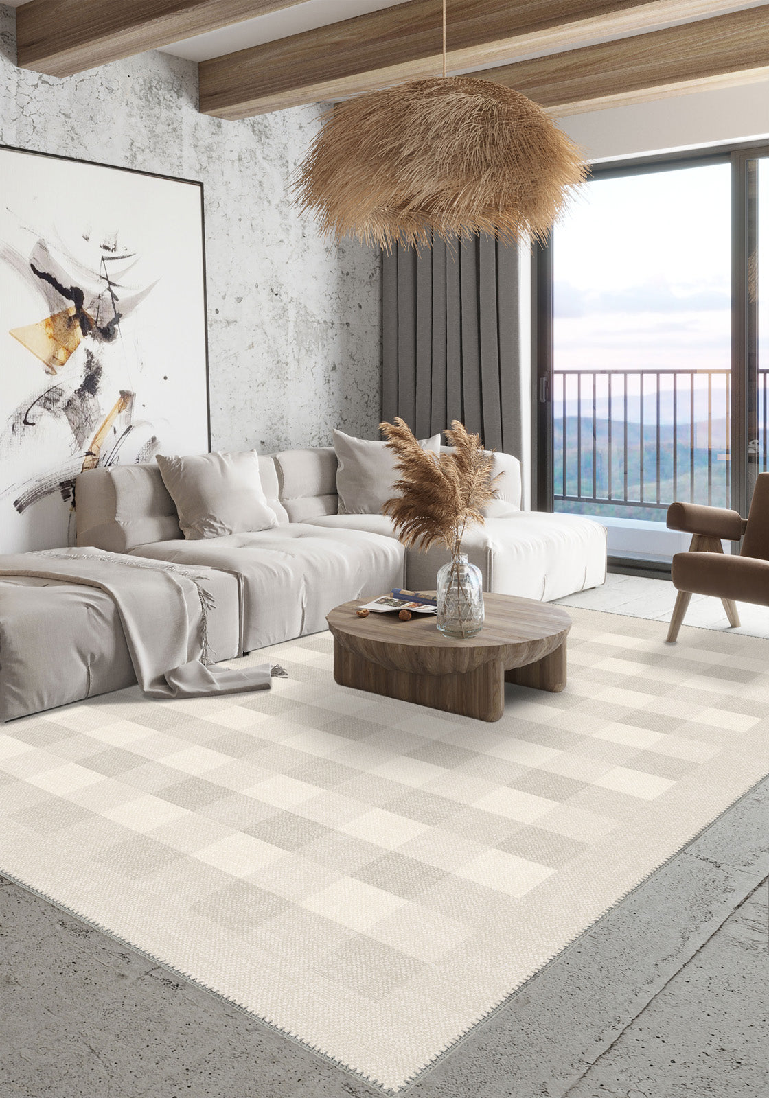 - Soft cream and ivory checkered pattern for a soothing, neutral look
