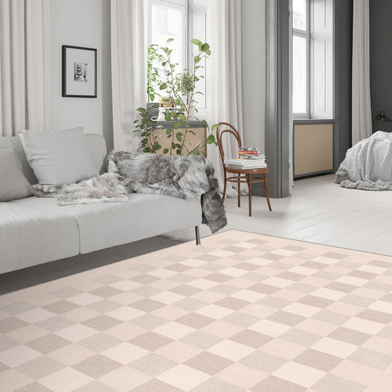 The Liam Geometric Pink Rug brings a subtle blend of sophistication and warmth to your space. Featuring a charming pink-toned geometric checkered pattern, this rug perfectly complements modern interiors while adding a touch of soft elegance to any room.