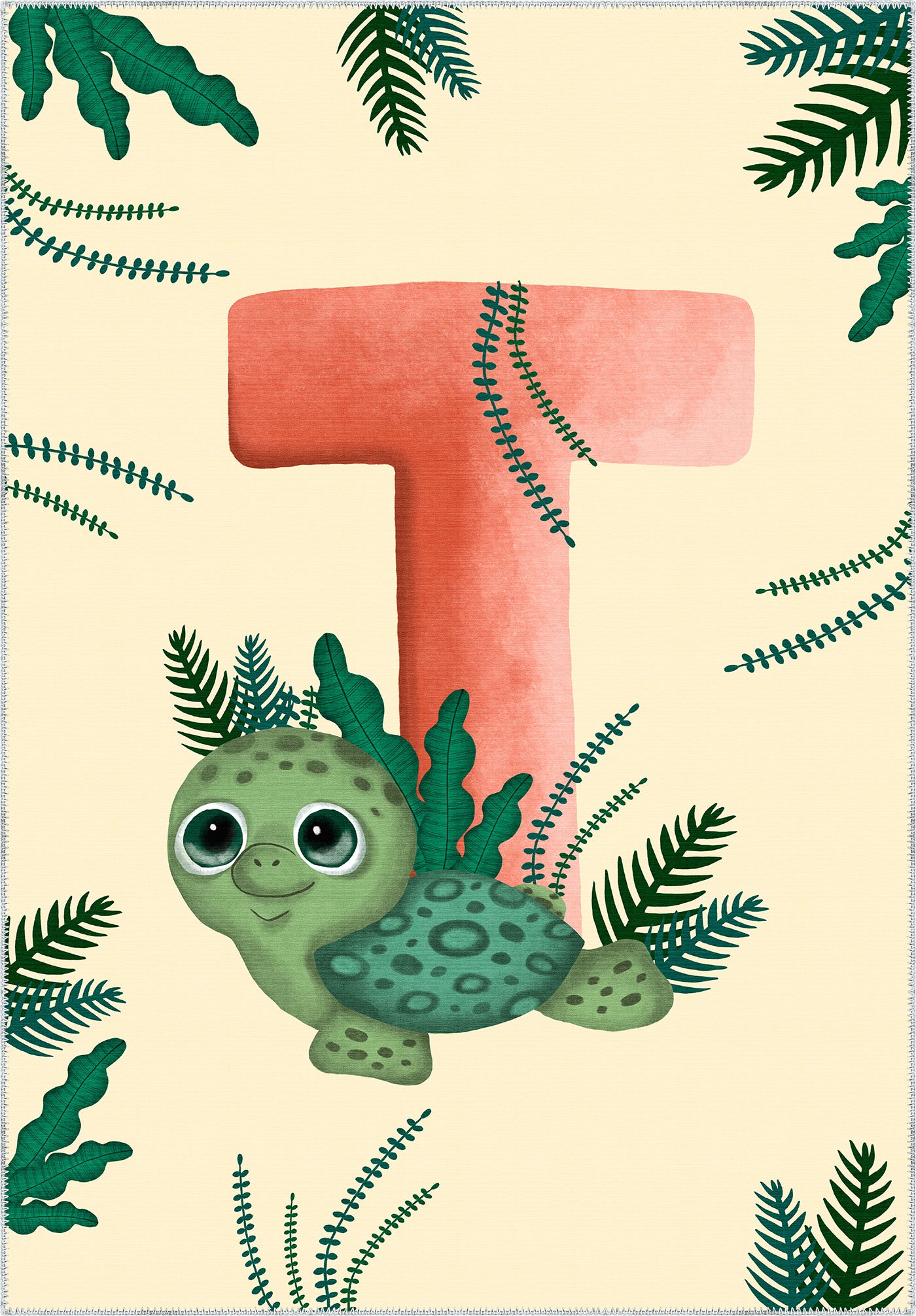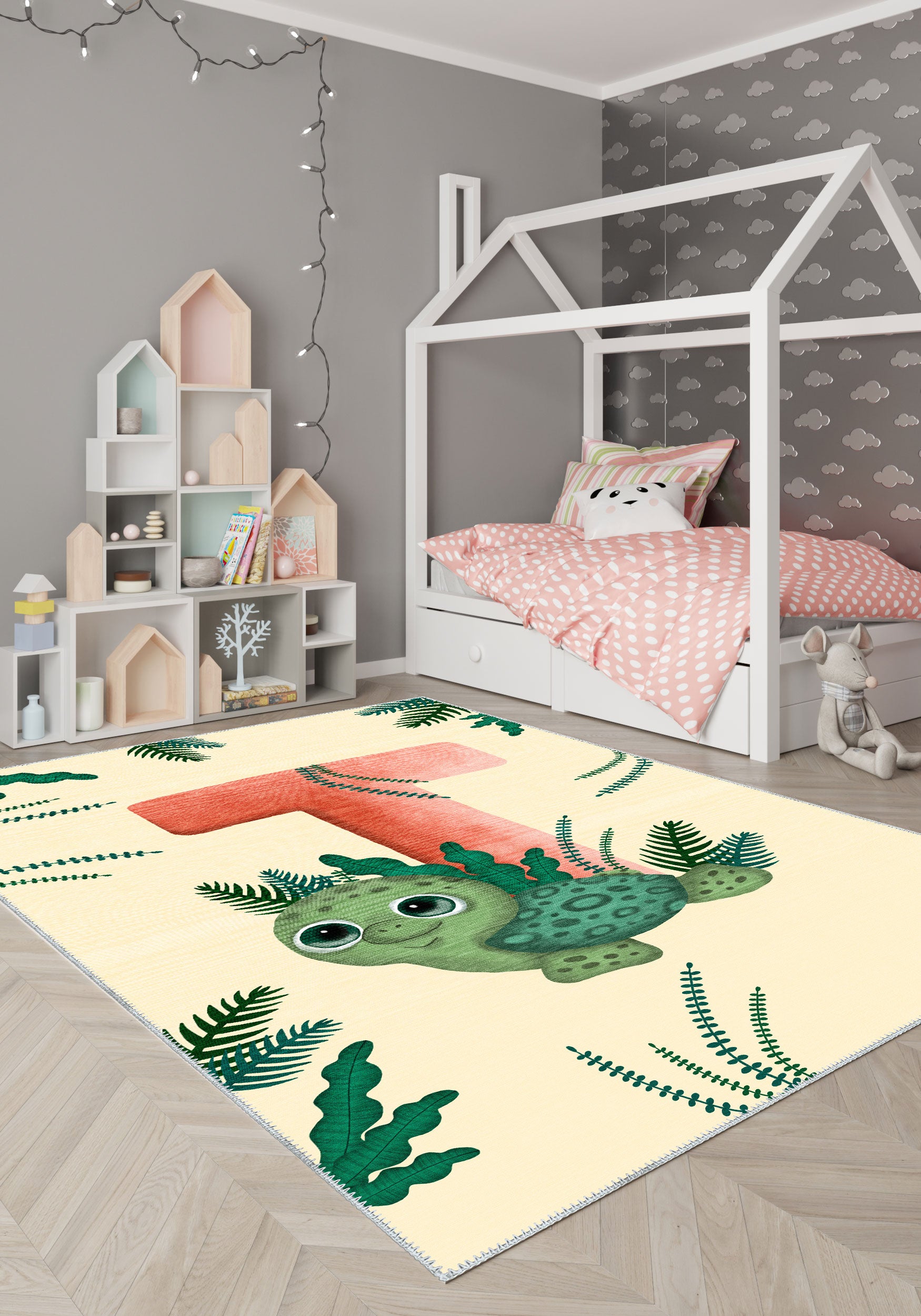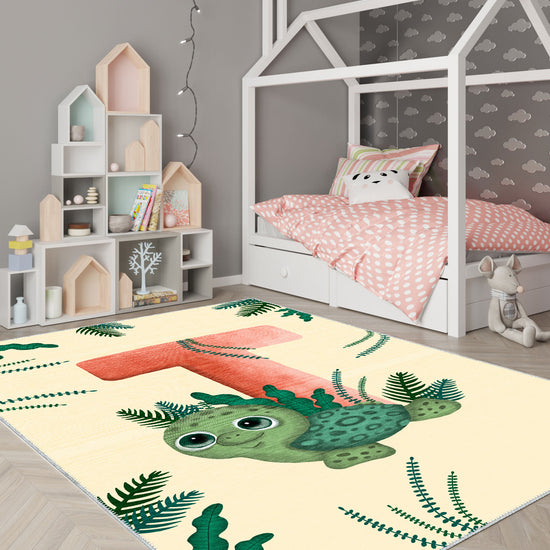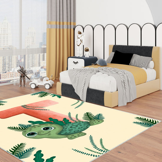 - Charming Turtle Character: The rug’s centerpiece is an adorable turtle illustration, designed to capture children’s imaginations and add a touch of whimsy to their space.