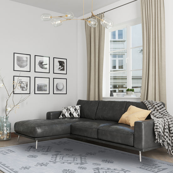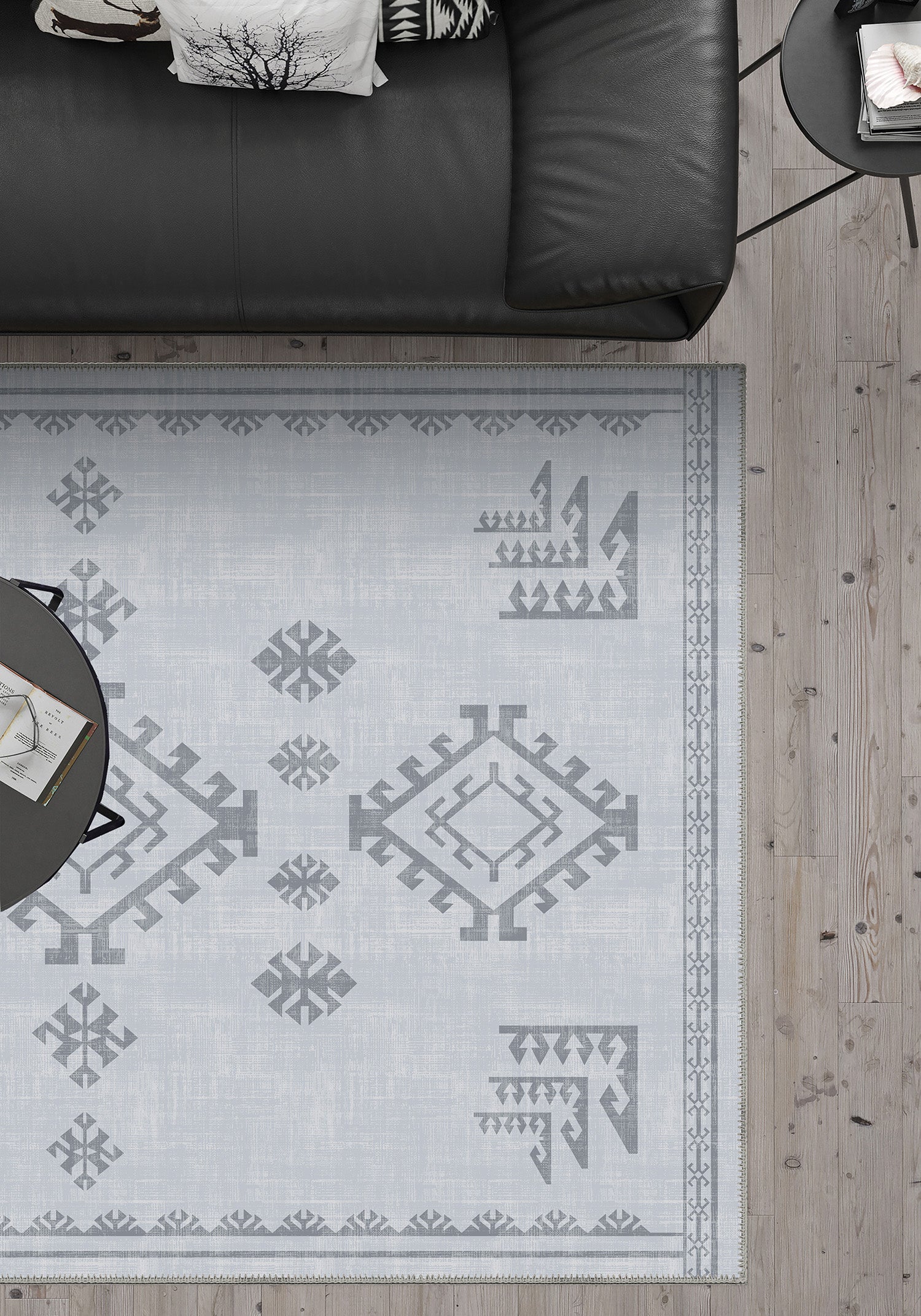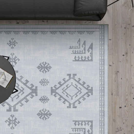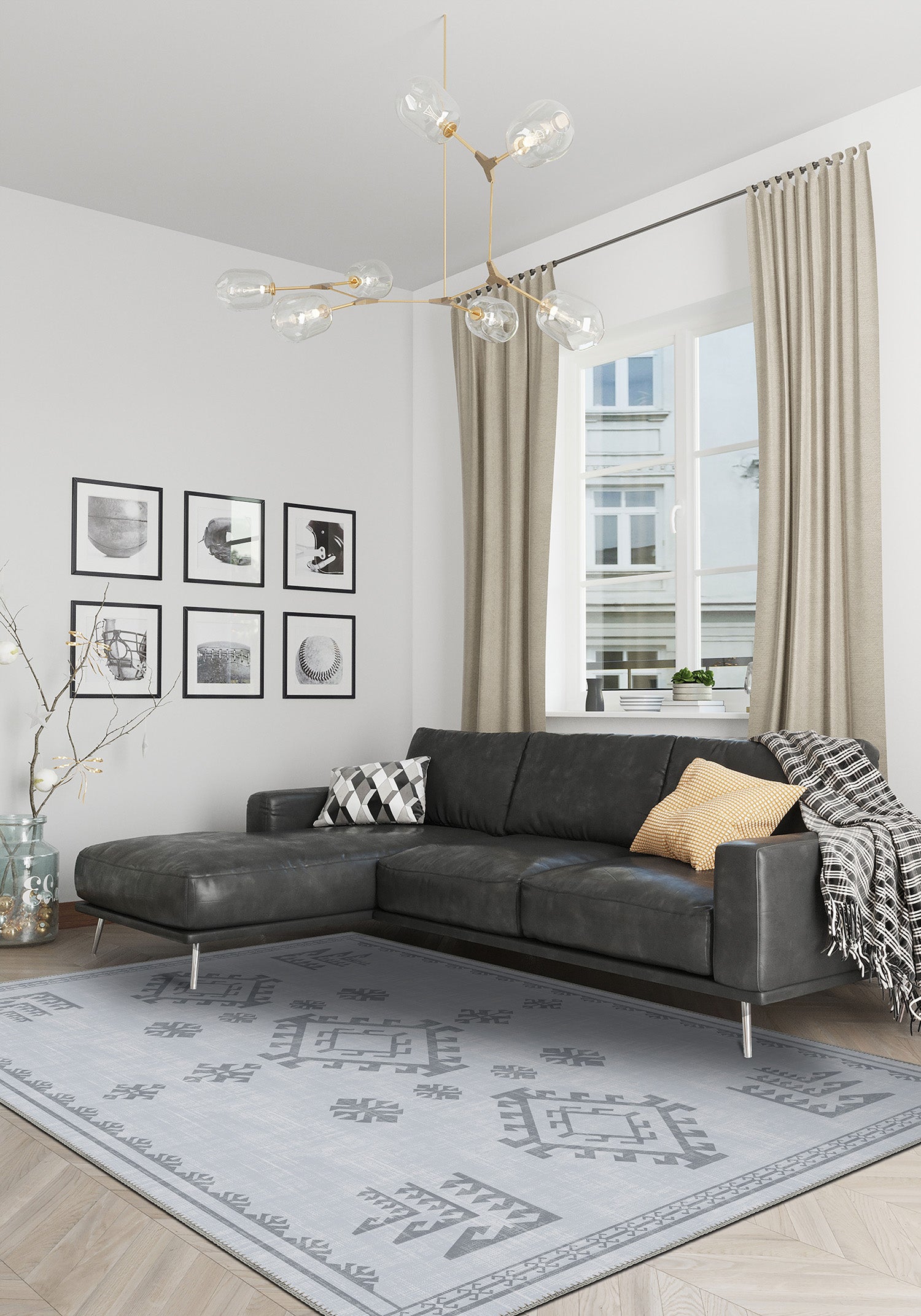 The Lina Scandinavian Rug captures the soul of Nordic interiors: serene, minimal, and effortlessly elegant. Its pale, frosty base with cool grey geometric motifs evokes snowy landscapes and quiet moments by the fire—making it a gentle statement for homes that favour calm over clutter.