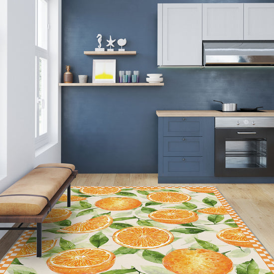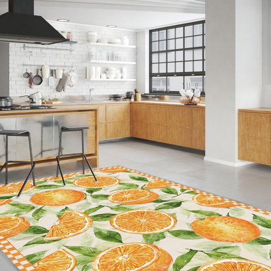 - Vibrant Citrus Motif: The bold orange slices and lush green leaves create a refreshing, cheerful vibe that's perfect for kitchen spaces.