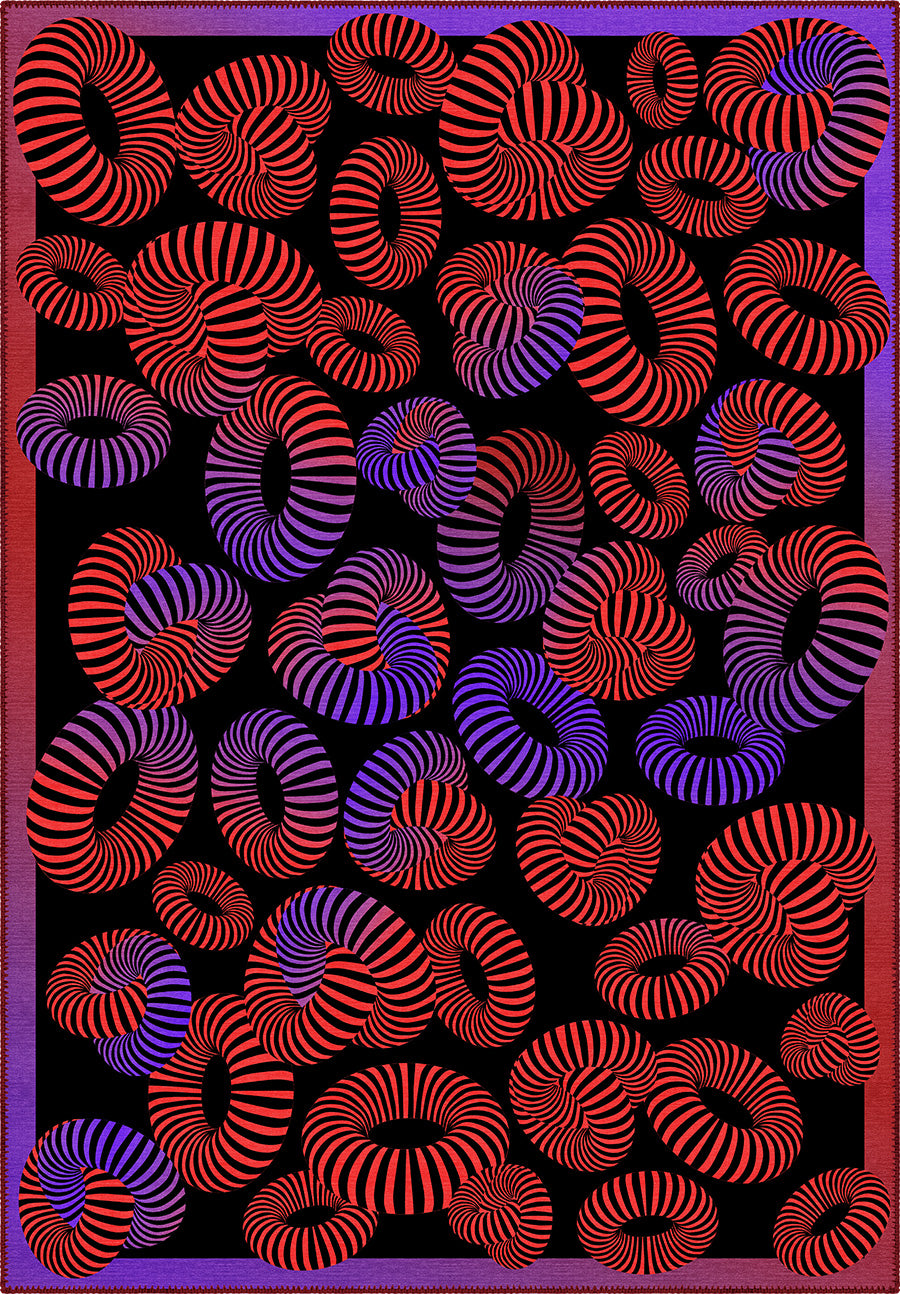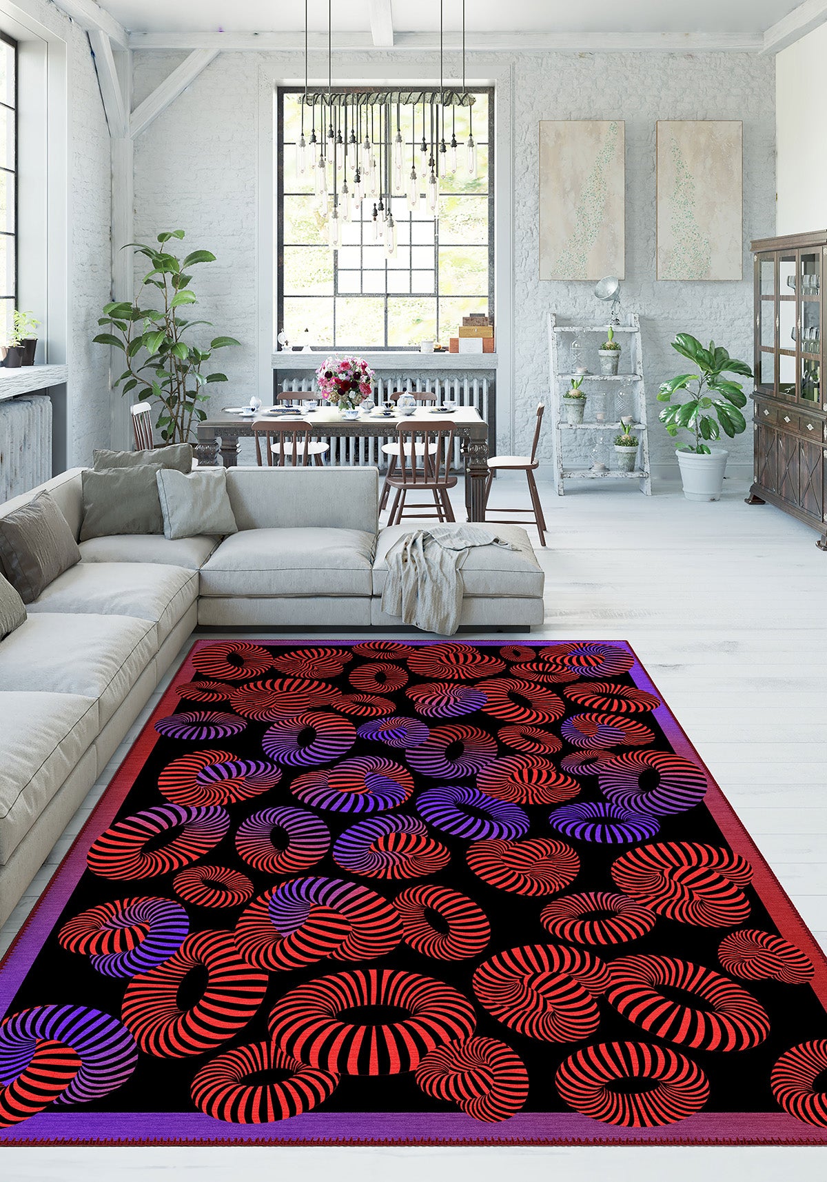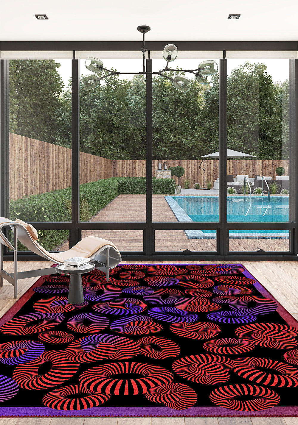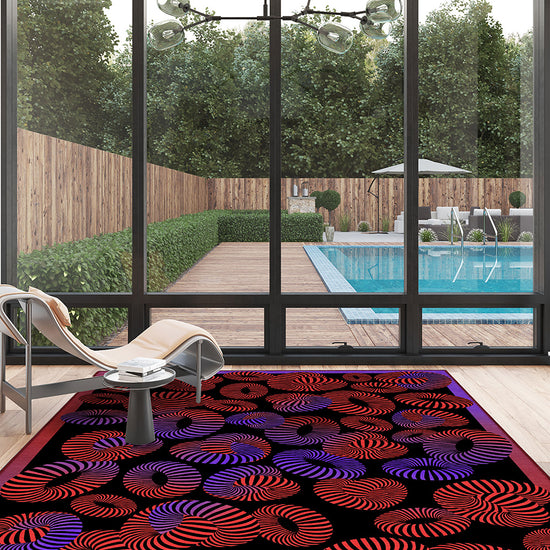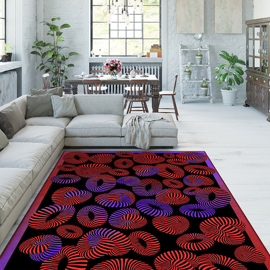 Step into another dimension—literally. The Lorelai Colourful 3D Rug features hypnotic spirals in deep violet and fiery red, floating over an inky black backdrop. This rug doesn’t whisper; it sings. With its pulsating geometry and dramatic contrast, it's a dream come true for anyone drawn to bold, expressive design. An instant icon for modern, maximalist, or creative interiors.