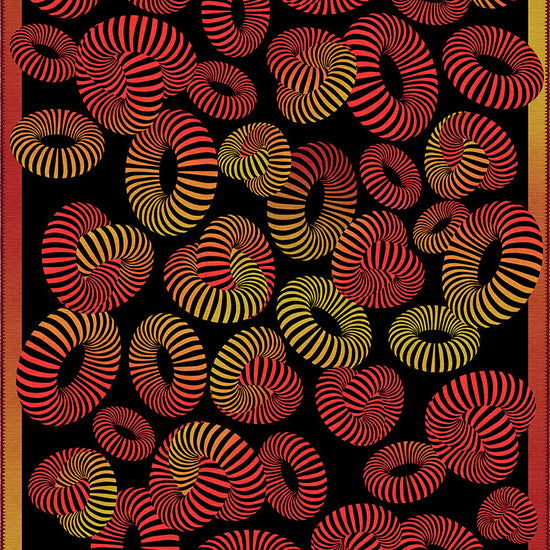 - Striking 3D-effect geometric pattern in red, orange, and yellow hues