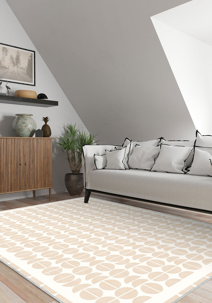 - Modern geometric design in soft cream hues
