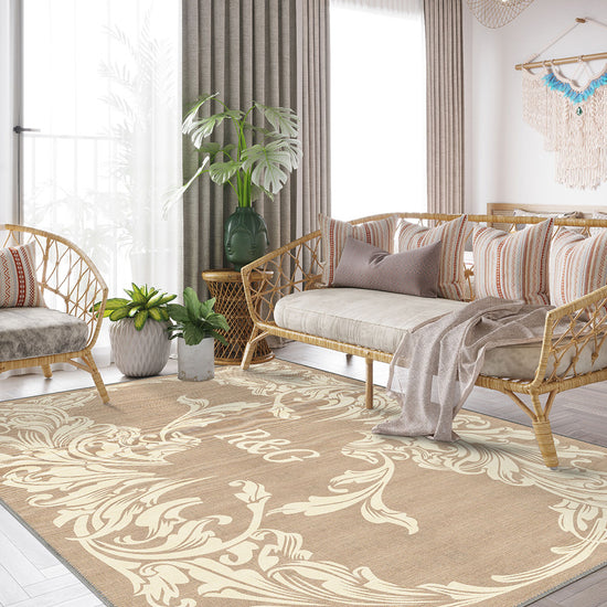 - Intricate Baroque-Inspired Pattern: The rug features an elegant Baroque-style border, with flowing leaf motifs that add an air of sophistication and grace to your space.