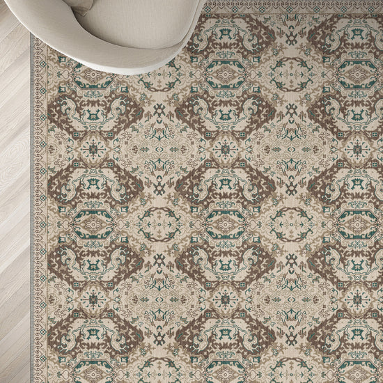 Infuse timeless charm into your space with the Lysandra Medallion Beige Rug. Featuring an intricate medallion pattern in warm beige tones accented with soft hints of green and brown, this rug brings a refined, vintage appeal to any interior.