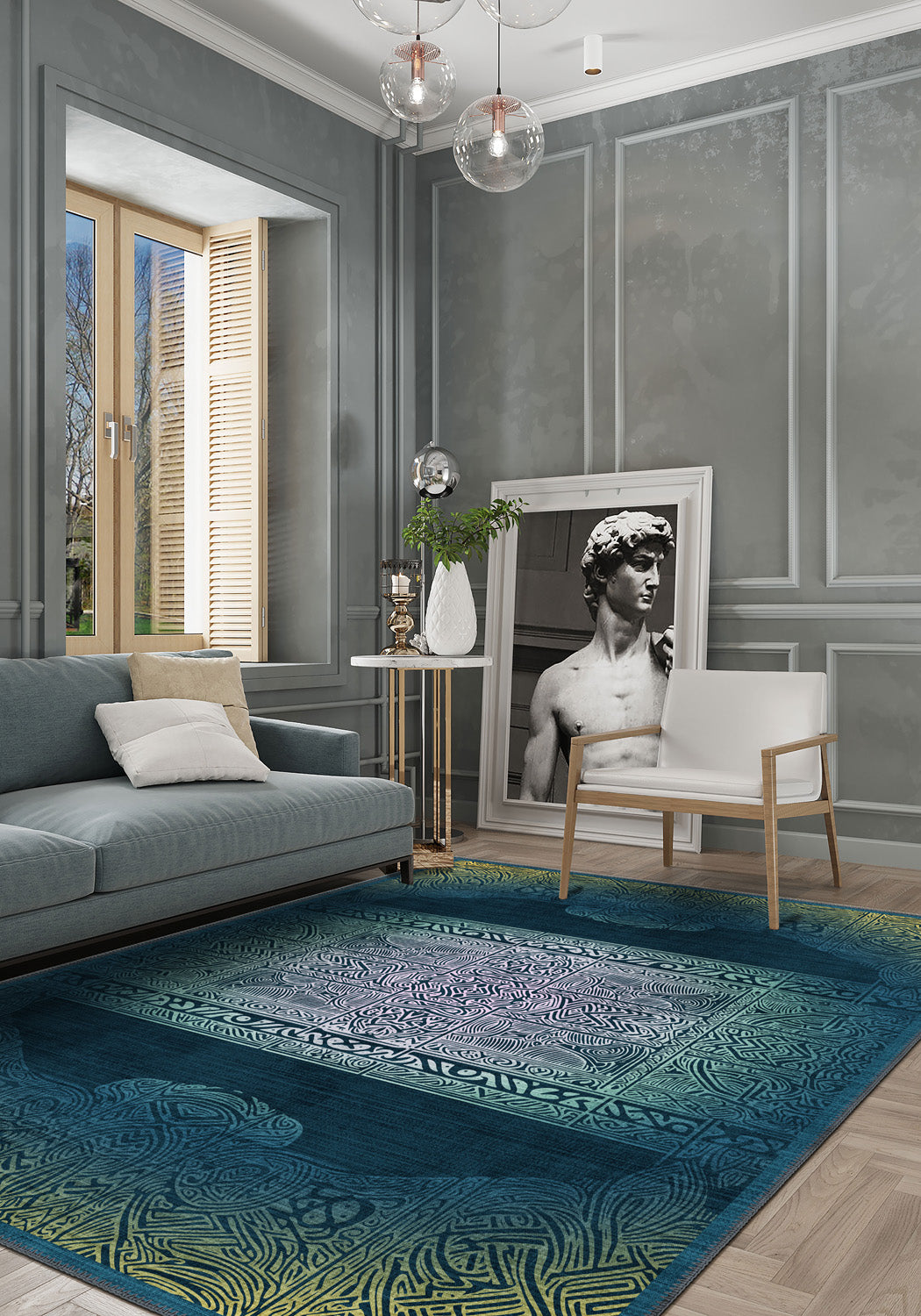 Maeva Teal Celtic Rug – A Mystical Dance of Knots and Colour