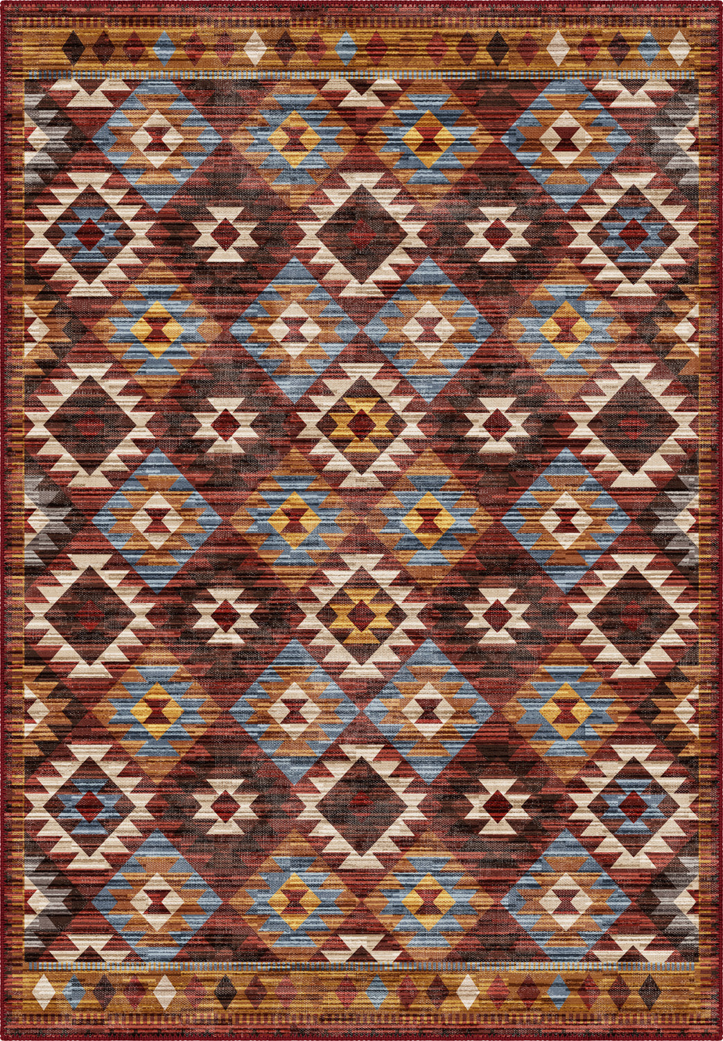 - Vibrant Color Palette: The bold mix of burgundy, blue, yellow, and earthy tones creates a dynamic look that is sure to stand out in any room.