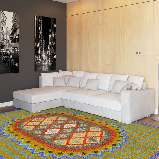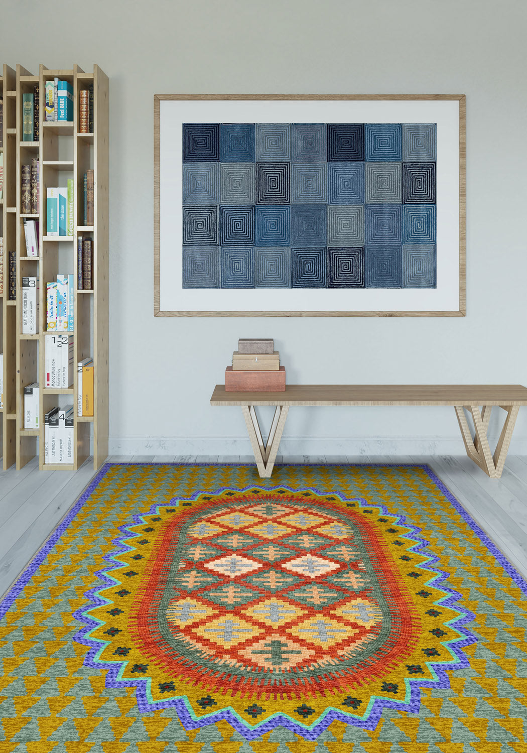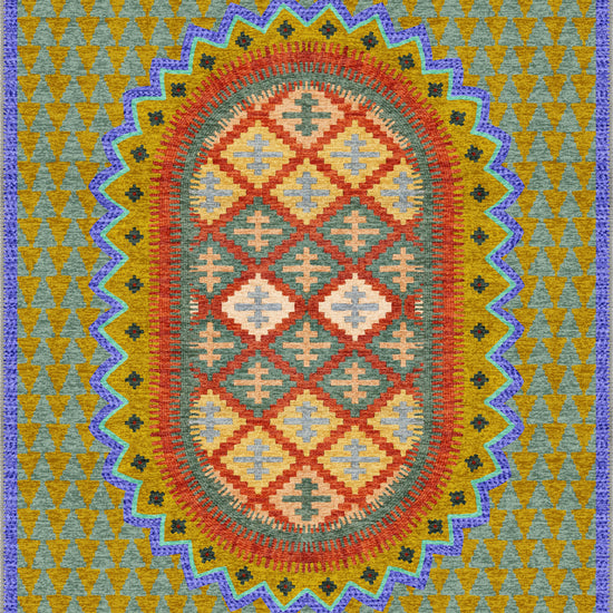 The Maria Colourful Vintage Rug is a celebration of heritage and vibrant artistry. With its striking central medallion surrounded by intricate geometric motifs, this rug blends folk-inspired patterns with an energetic, modern twist. The eclectic mix of golden yellow, deep teal, warm red, and soft blue creates a captivating design that adds personality and warmth to any space.