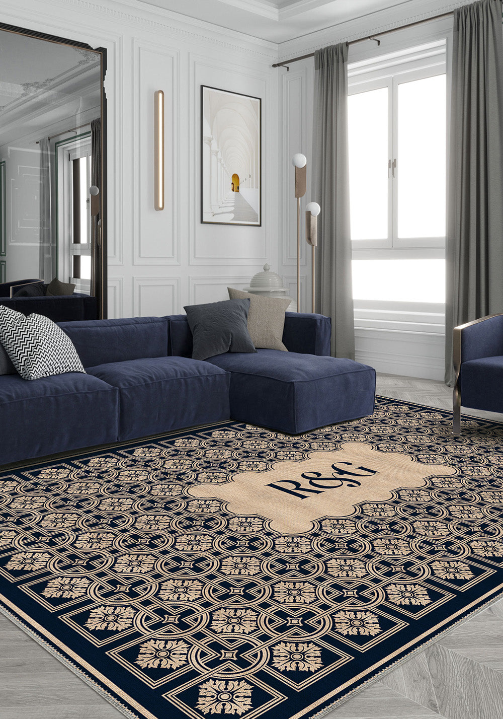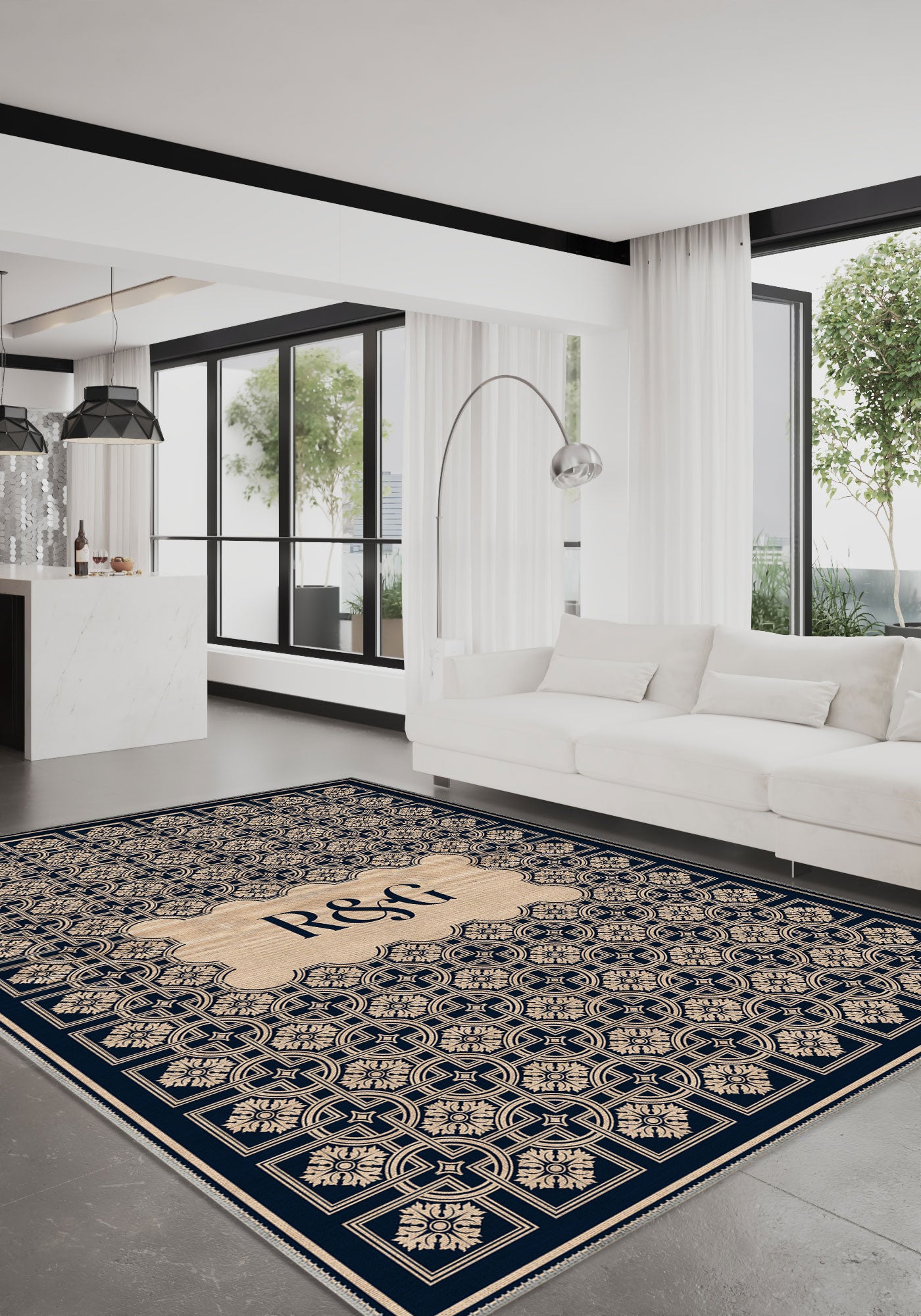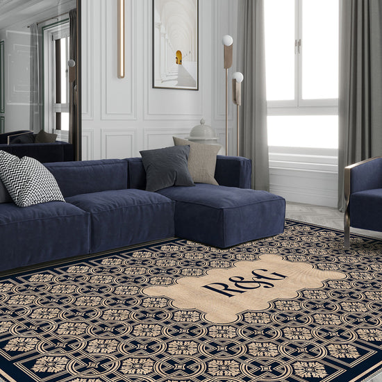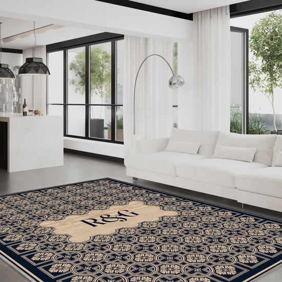 Marisa Navy Monogram Personalised Rug – A Timeless Blend of Style and Personalisation