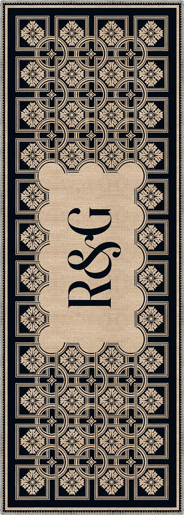 - Elegant Geometric Border: The ornate geometric design frames the central monogram, offering an aesthetic that combines modern elegance with classic detail.
