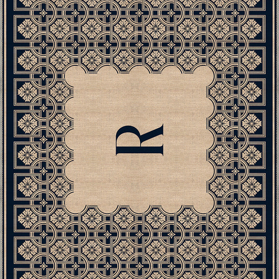 The Marisa Navy Monogram Personalised Rug offers a unique fusion of elegant design and personalisation. Its intricate geometric pattern in rich navy and beige tones surrounds a central monogram, allowing you to customise it with the initial of your choice. Whether for living spaces, bedrooms, or nurseries, this rug adds a personalised and luxurious touch to your home decor, while the durable and machine-washable material ensures it’s as practical as it is beautiful.