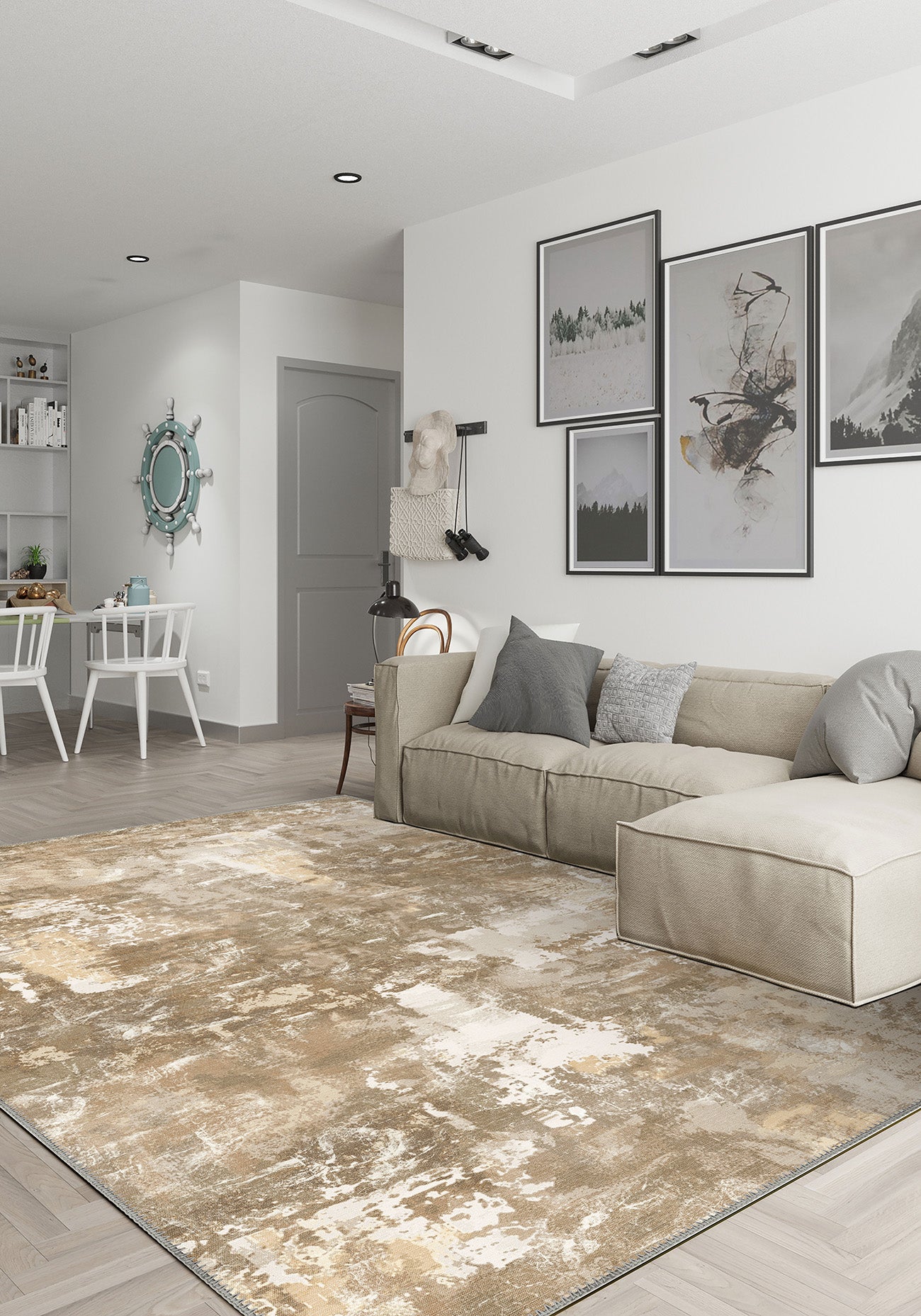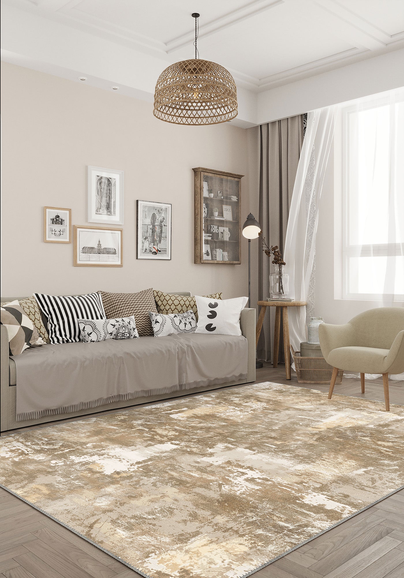 There’s something irresistibly grounding about the Matthew Light Brown Washable Rug. With a palette that blends soft taupe, sandy beige, and warm stone, it brings a subtle richness to your interiors—like the gentle embrace of sunlight filtering through linen curtains. Its abstract painterly texture makes it feel both rustic and refined, perfect for elevating your space without stealing the spotlight.