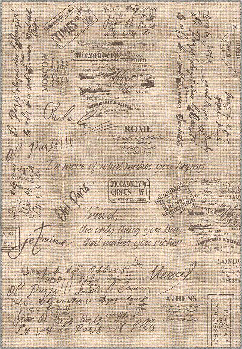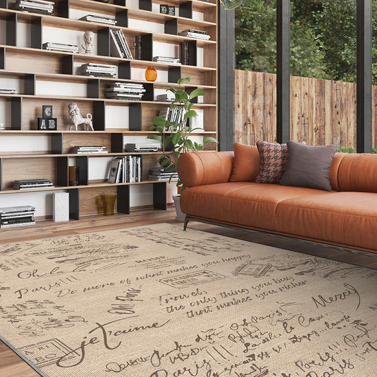 With a warm, parchment-toned base and handwritten scripts that feel plucked from the pages of love letters and travel journals, the Memora Document Indoor Outdoor Rug brings soul and storytelling into every corner of your home. Its vintage passport stamps, café scribbles, and charming city names evoke wanderlust without ever leaving the house. Think of it as a canvas for your memories, set beneath your feet.