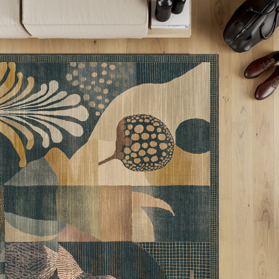 - Vibrant Colour Palette: A striking combination of deep greens, warm golds, muted pinks, and cool blues, this rug is an instant eye-catcher, offering a dynamic pop of color for any room.