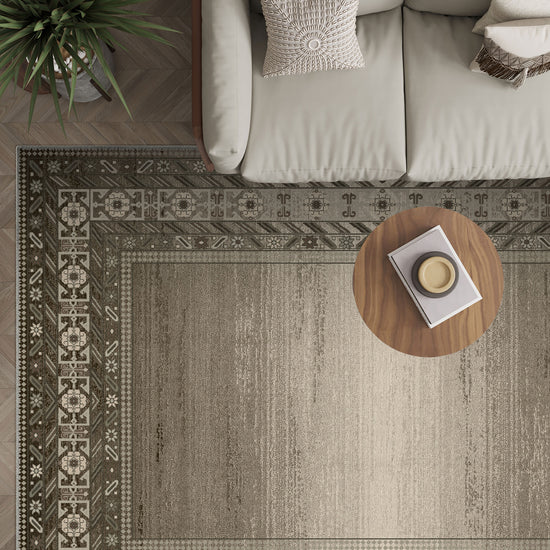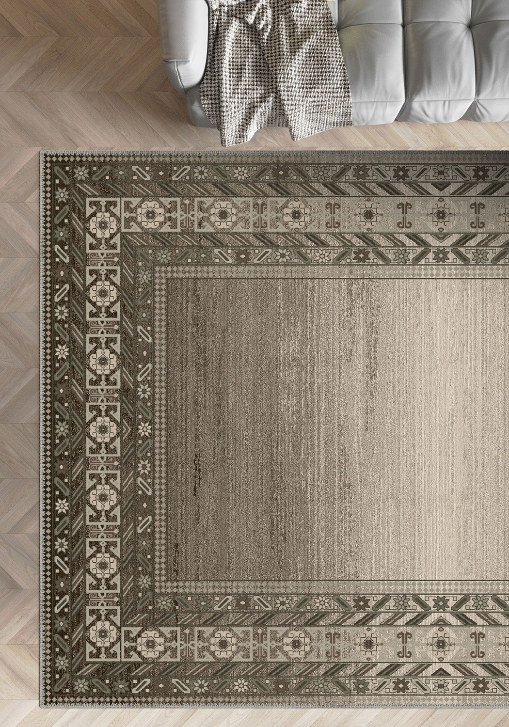 Milona Brown Bordered Rug – Timeless Elegance with a Rustic Touch