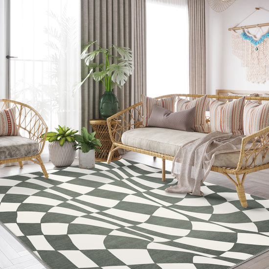 Mini Green Checkered Retro Rug – A Retro Twist on Modern Design