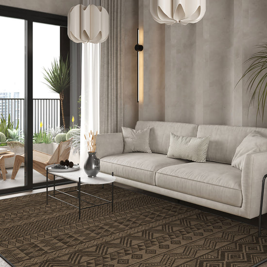 - Rhythmic tribal patterns that bring movement and depth to any floor