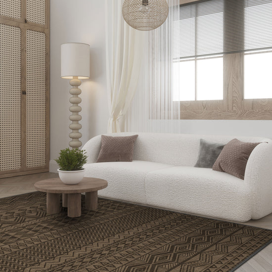 The Naya Brown Tribal Rug is a confident, earthy anchor for any space. With layers upon layers of striking tribal motifs in rich brown hues, it evokes a sense of ancient rhythm and quiet power—like the textured stories of old woven right beneath your feet. It’s not just a rug, it’s a statement piece with roots.