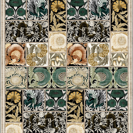 The Nerida Art Deco Rug isn’t just a floor covering—it’s a gallery wall for your feet. Rich in detail and full of vintage soul, this striking patchwork-style design features stylised florals and mythical foliage in a palette of ochre, sage, teal, ivory, and charcoal. It’s equal parts William Morris style and art deco opulence, with a maximalist edge that somehow still feels composed.
