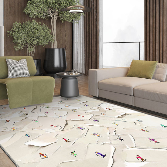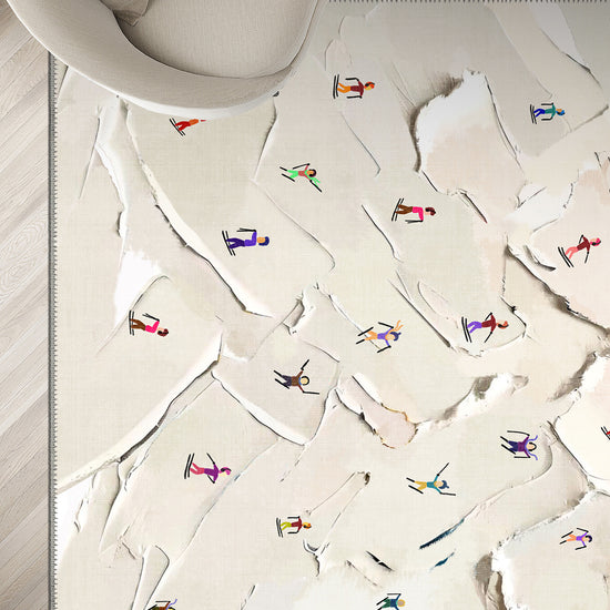 The Nico Ski Slopes Rug is pure storytelling on textiles. Against a soft, neutral snow-toned backdrop, colourful miniature skiers glide and tumble across painterly mountain peaks. It’s cheerful, unexpected, and totally charming—bringing a sense of play and movement to any space. This isn’t just a rug; it’s a snowy daydream come to life.