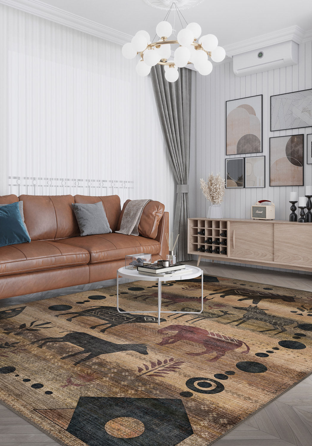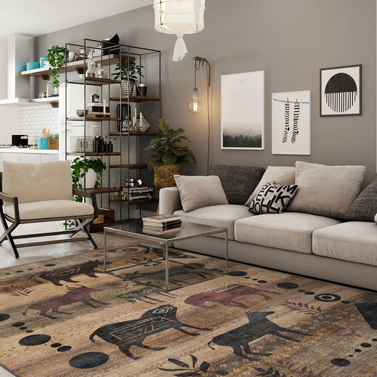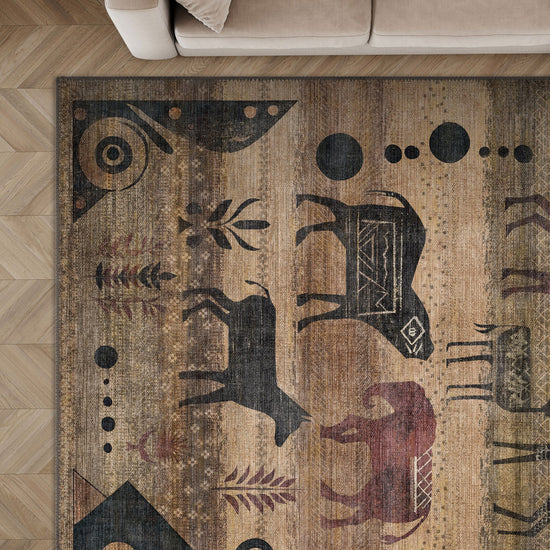Bring an eclectic touch to your home with the Nomad Washable Boho Rug. Showcasing a striking tribal-inspired design featuring symbolic animal motifs and earthy tones, this rug is perfect for adding a bold yet warm aesthetic to any space. Designed for durability and easy maintenance, it’s an ideal choice for high-traffic areas.