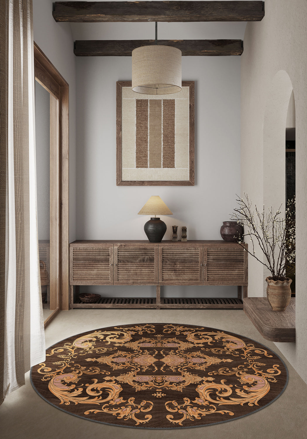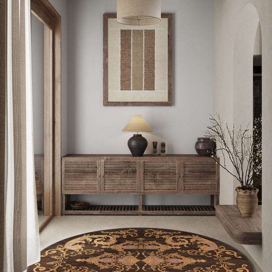 If your taste leans to ornamental, traditional and a touch of romantic, Octavia is the pièce de résistance. Its chocolatey base reads sophisticated, while the baroque scrollwork catches daylight like jewellery. Because it’s washable and low-pile, you get high drama without high maintenance—effortless elegance, day after day.