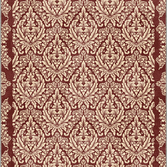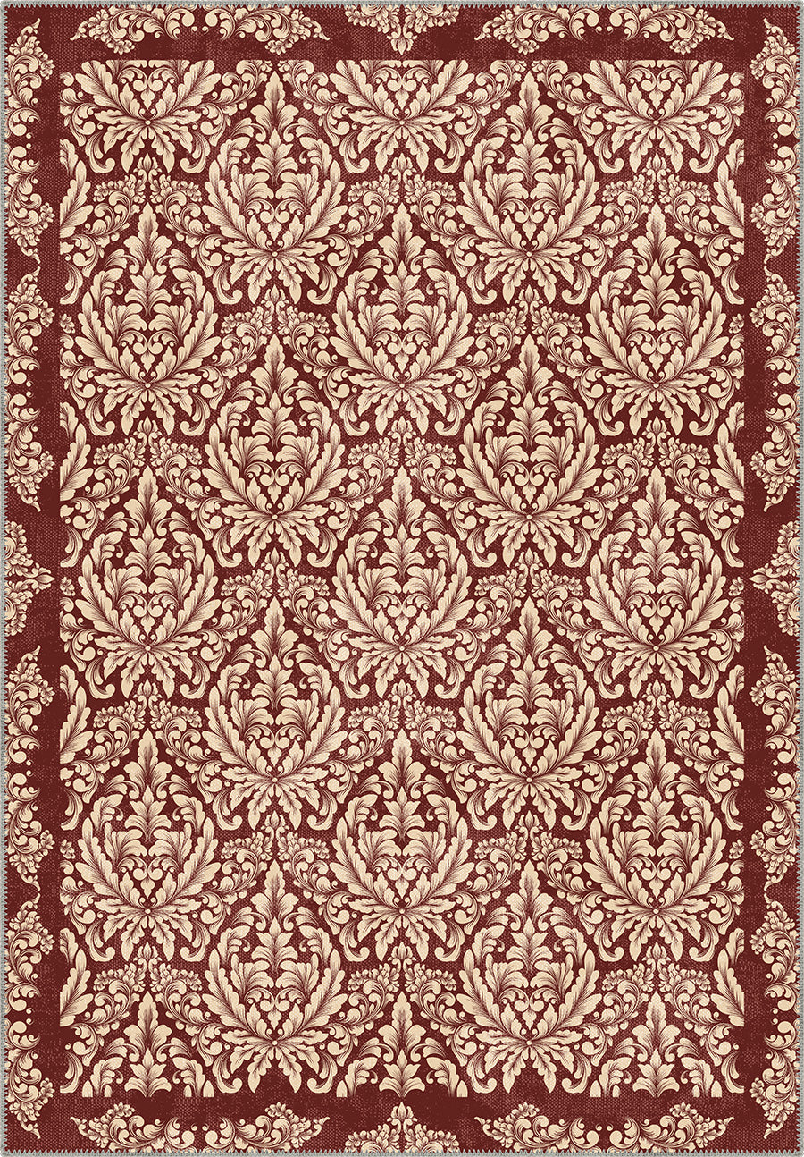 - Luxuriously detailed baroque pattern in cream and terracotta