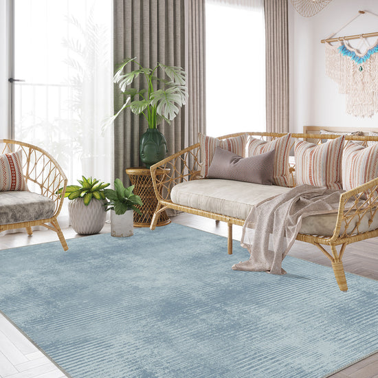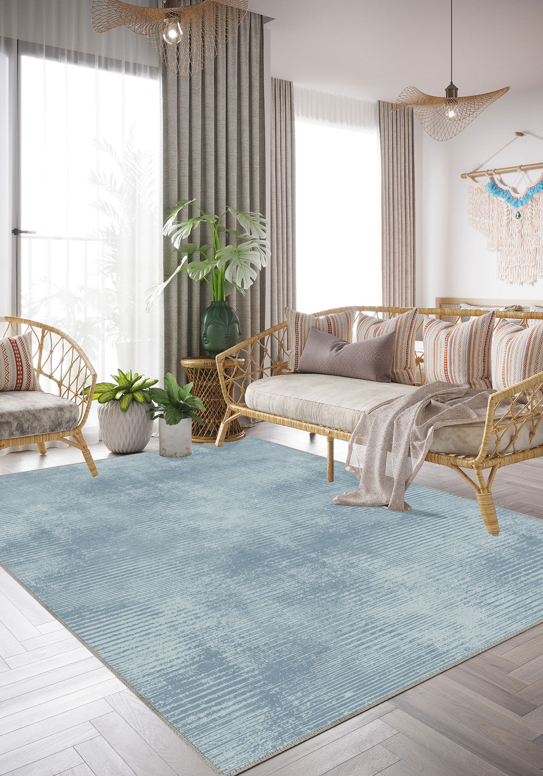 Bring a fresh and modern vibe to your space with the Oliver Modern Blue Rug. Featuring a refined, distressed blue pattern with subtle linear textures, this rug adds an artistic touch to your decor without overpowering your space.