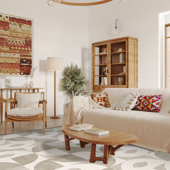 If you love subtle sophistication with an artistic twist, this rug is the perfect addition to your home. The geometric detailing creates a unique yet harmonious look, adding depth and character to any room while maintaining a light, airy aesthetic.