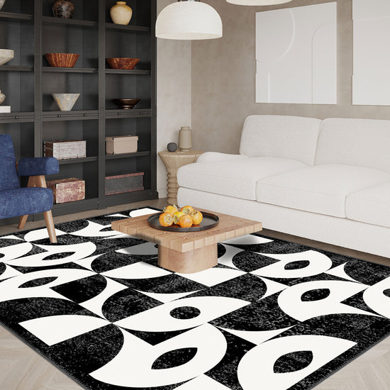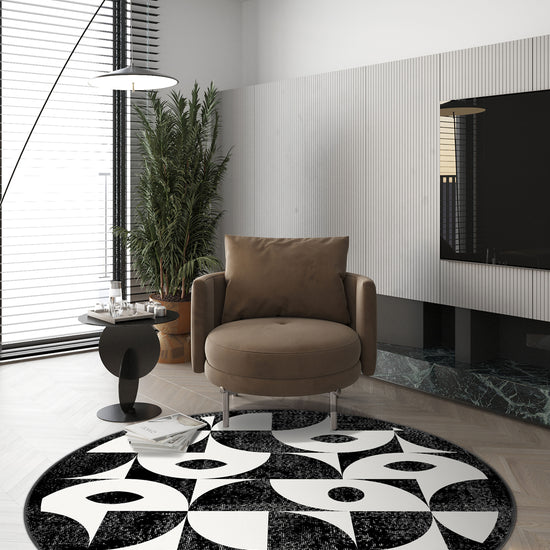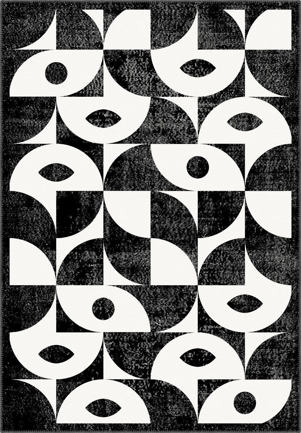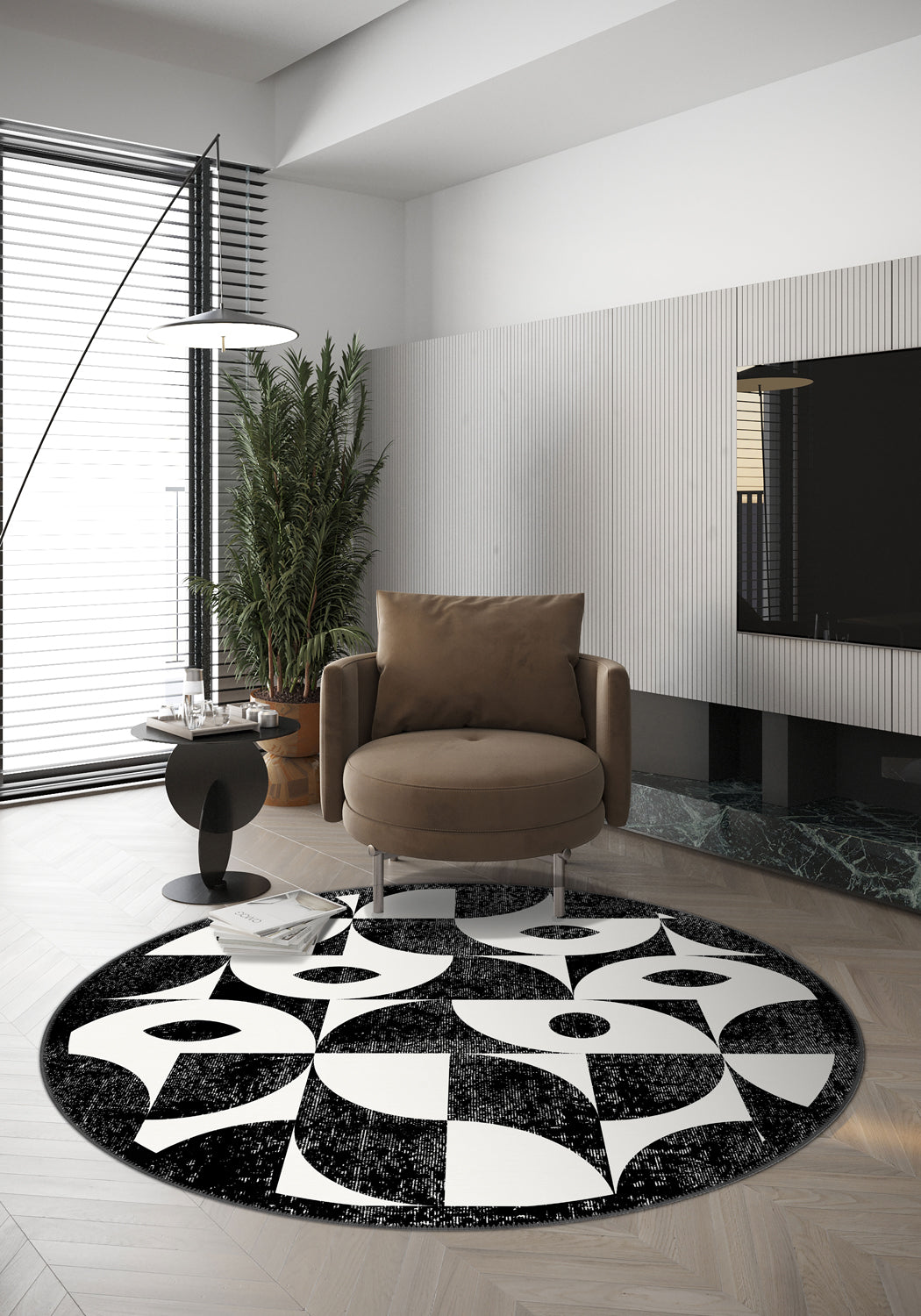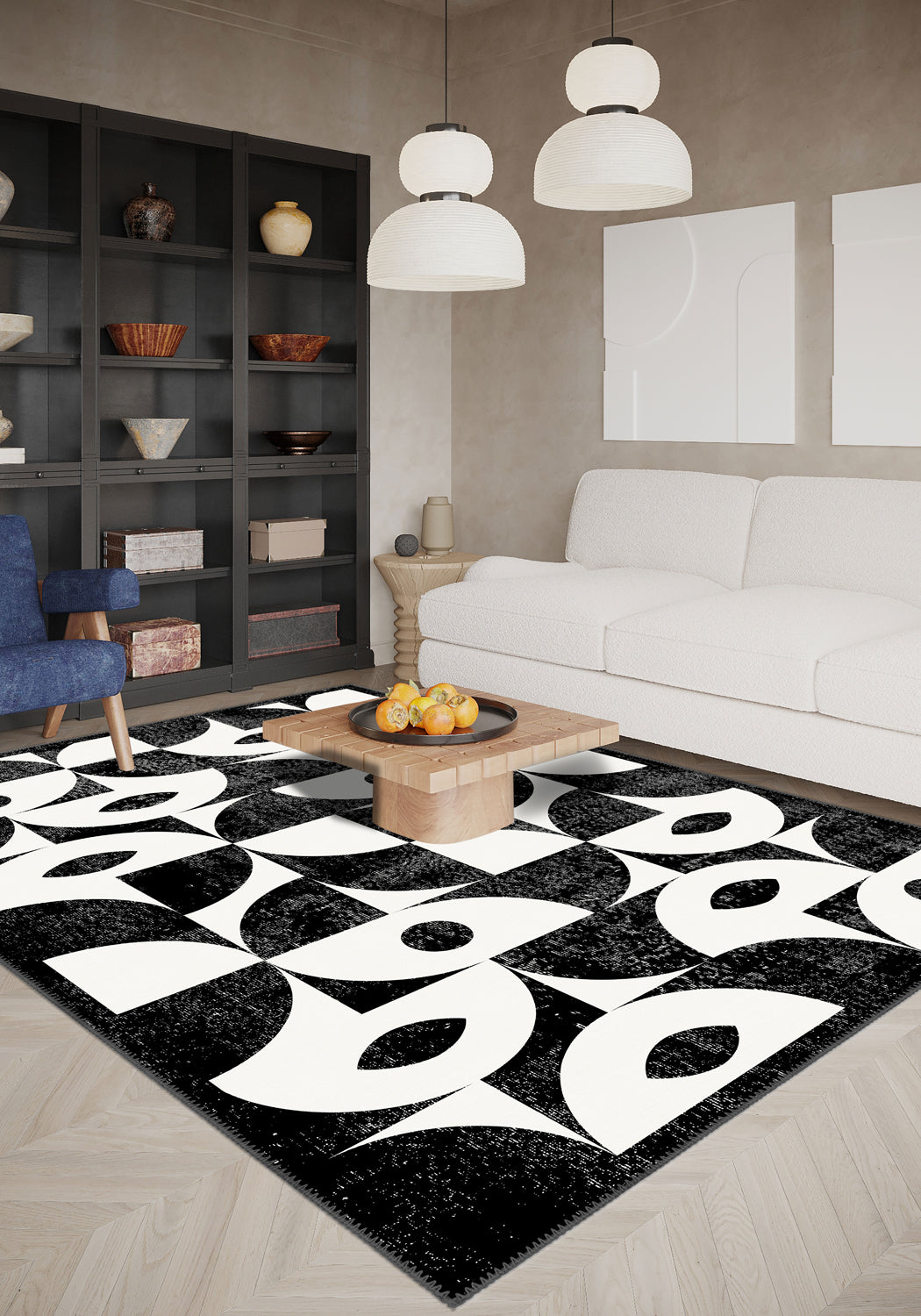 If you love contemporary art and geometric patterns, this rug is for you. It merges timeless black-and-white aesthetics with intricate patterns that captivate the eye. A stylish way to redefine your space with effortless sophistication.
