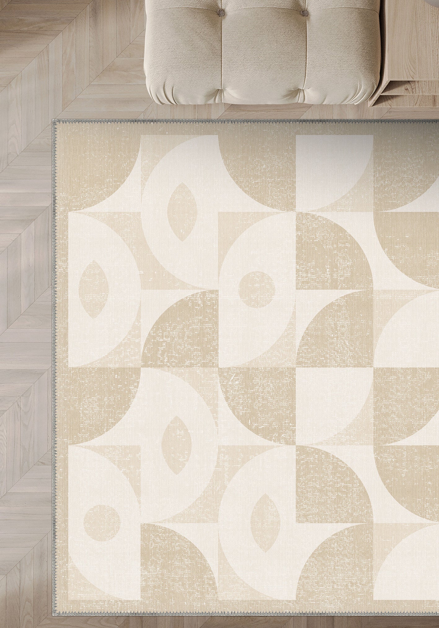 Ondara Cream Geometric Washable Rug – A Soft and Stylish Accent for Any Space